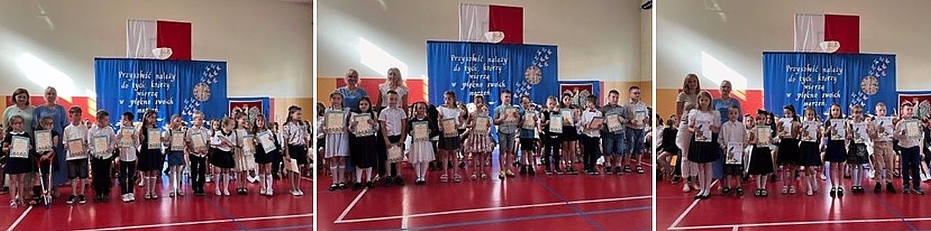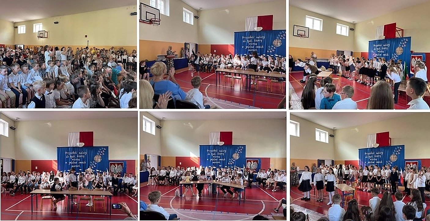 21 czerwca 2024 roku o godzinie 8:00 zabrzmiał ostatni w tym roku szkolny dzwonek wzywający uczniów na zajęcia. 🏠🏠🏠🛎🛎🛎🛎🕰🕰🕰🛎🛎Tym razem jednak zapraszał on szkolną brać z klas 1-3 na akademię kończącą czas nauki. Trud i praca dzieci zostały docenione. Uczniowie szczególnie wyróżniający się z rąk pani dyrektor Renaty Gibes otrzymali dyplomy wzorowego ucznia.