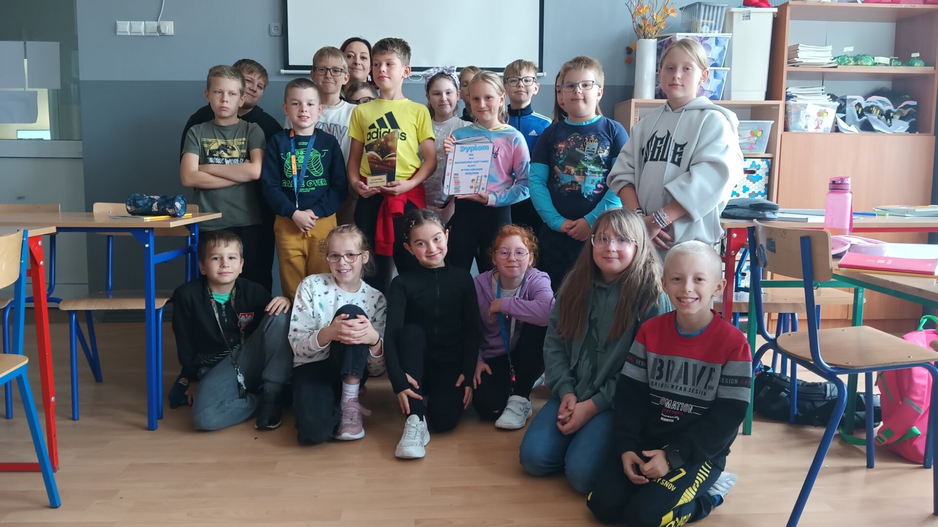 Nasza obecna klasa 4a dumnie reprezentuje tytuł zdobyty w minionym roku szkolnym, otrzymując statuetkę, która jest przechodnia!