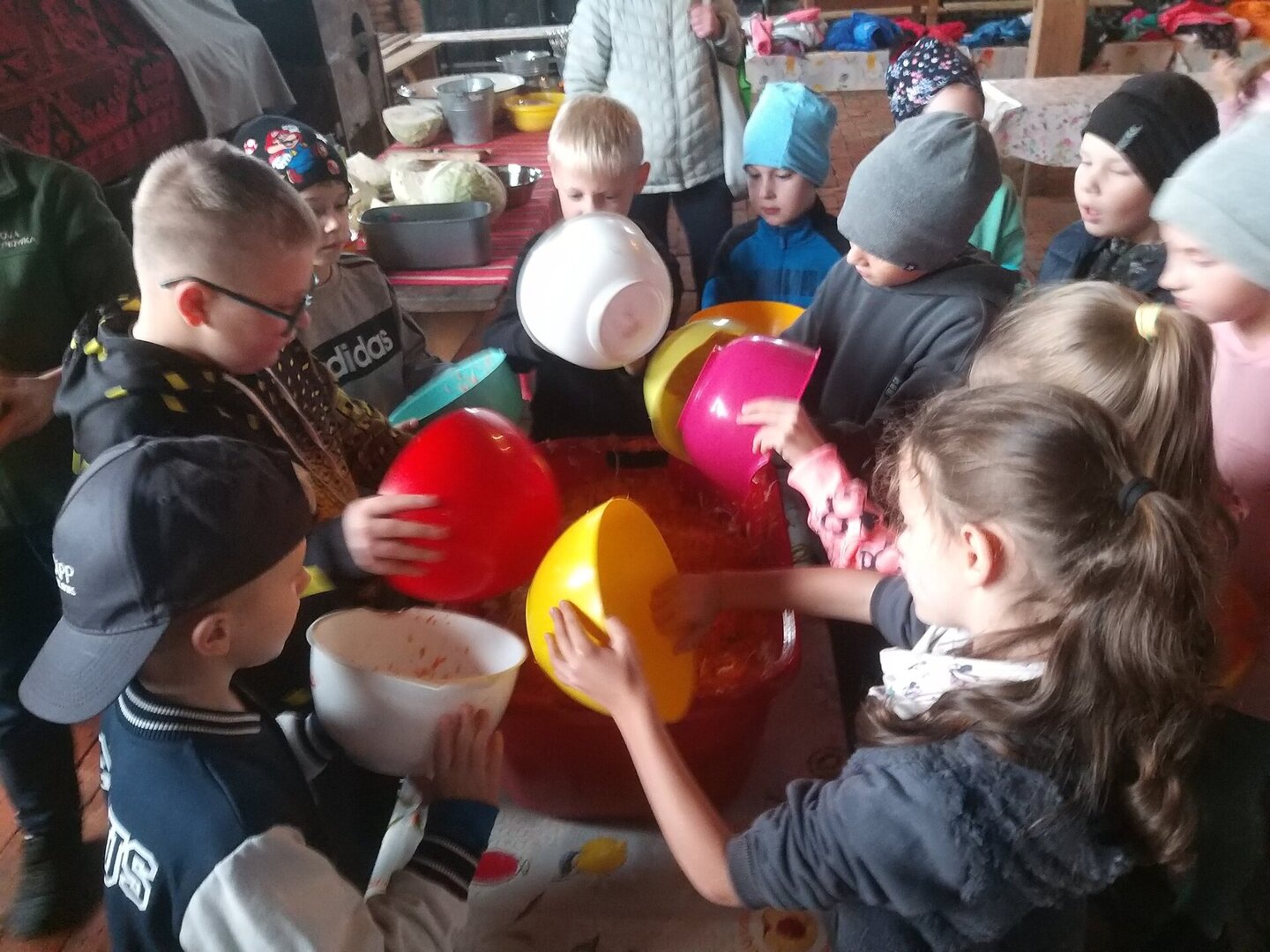 W czwartek klasy drugie wybrały się na wycieczkę do Mościska. Dzieci uczestniczyły w zajęciach warsztatowych z kiszenia kapusty i lepienia pierogów. Było też wspólne ognisko, spotkanie ze zwierzętami oraz gry na placu zabaw! 💙🧡💜🤎❤️💚🤎🧡❤️💚🧡🤎💜❤️💚💚🧡❤️🧡💜❤️