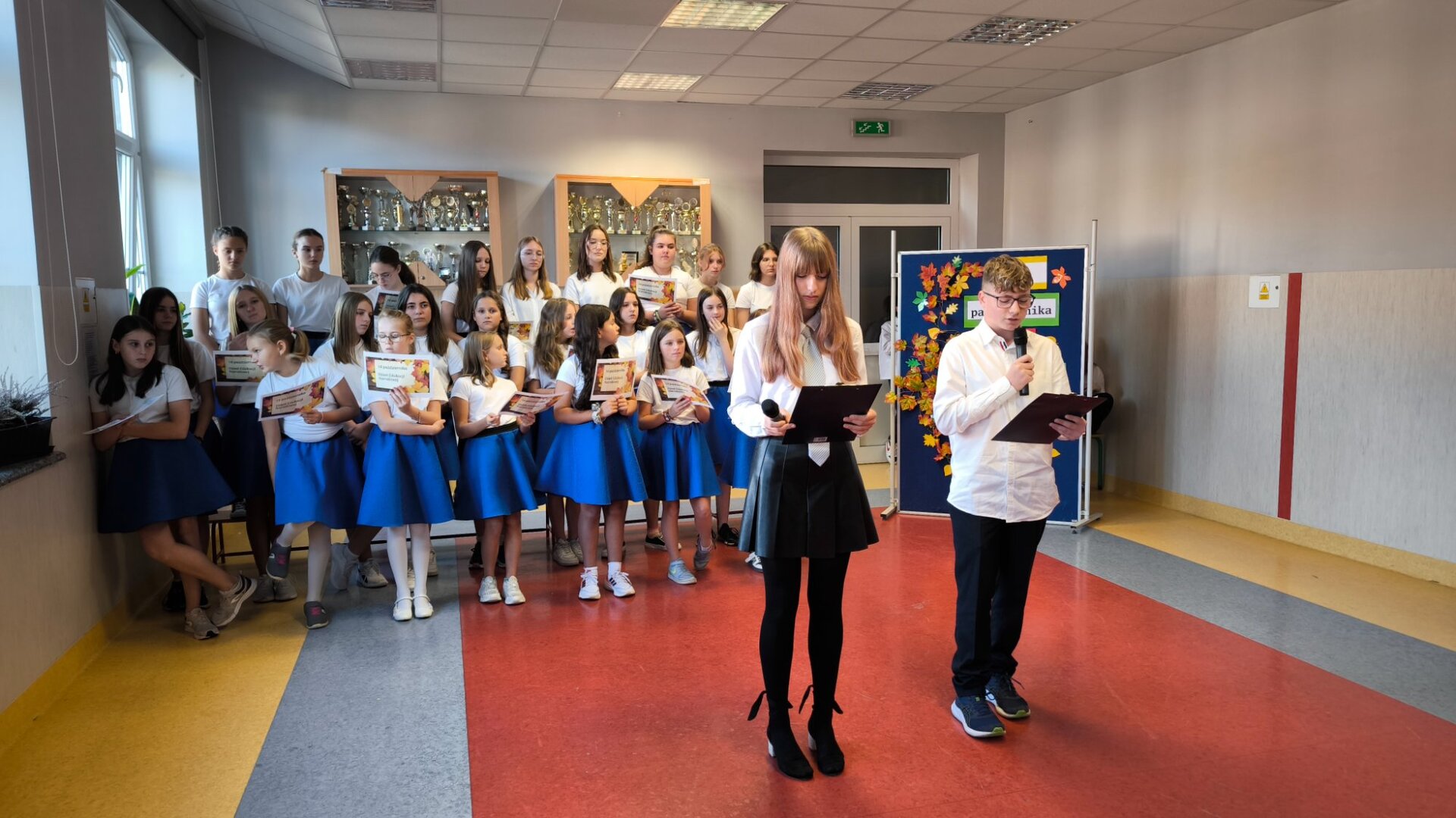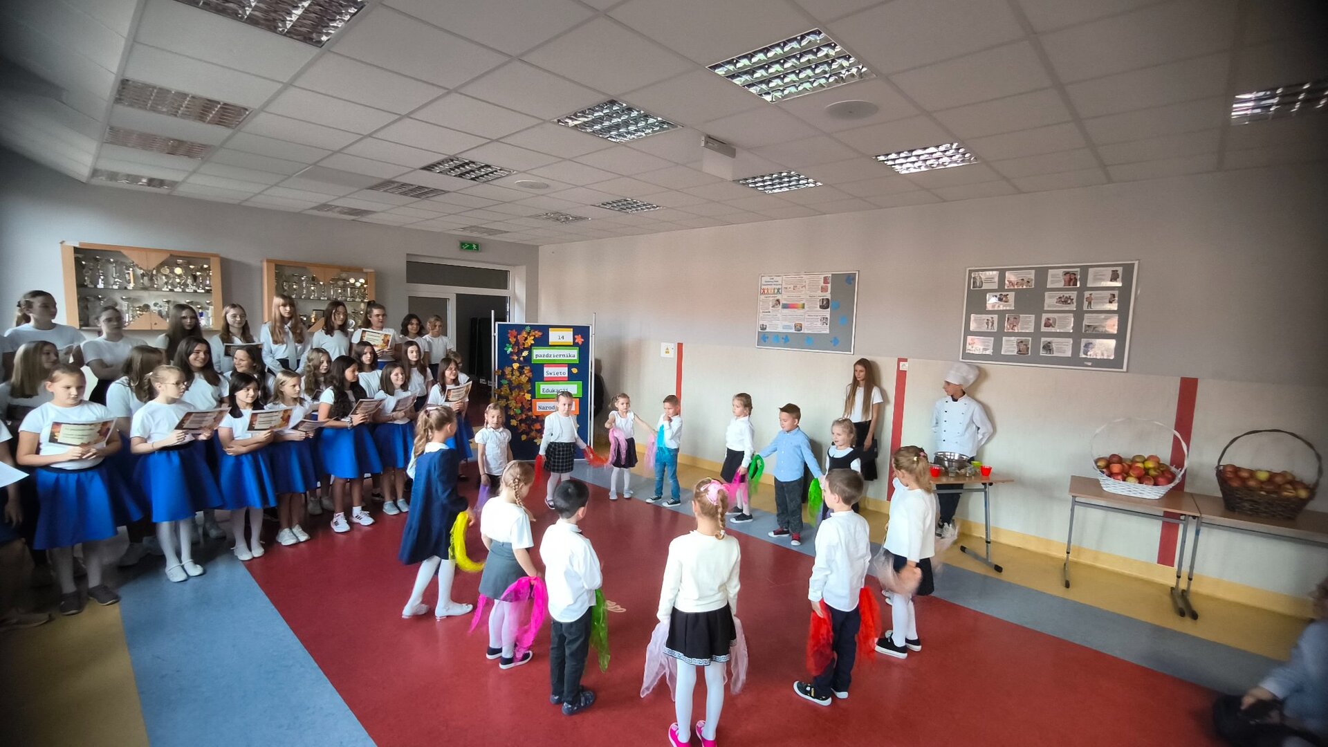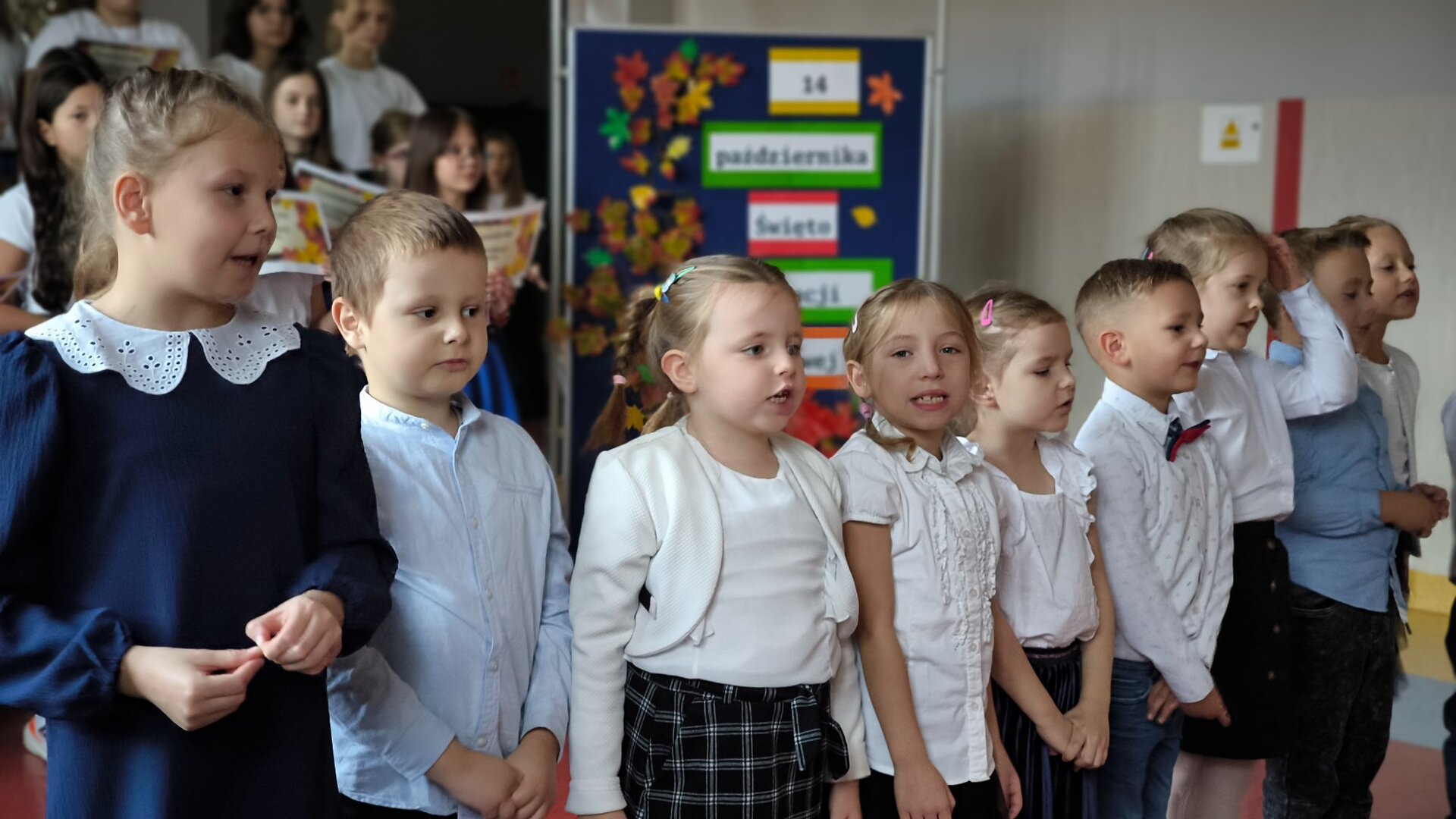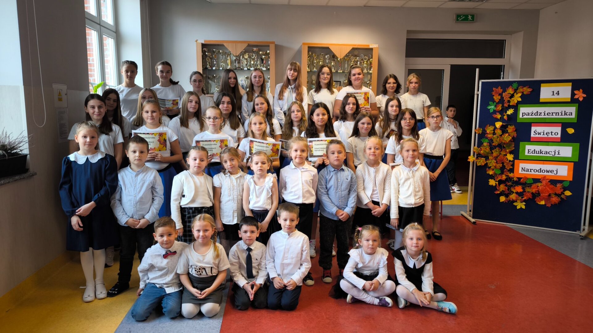 Siódmoklasiści zaprezentowali wówczas program artystyczny tematyką nawiązujący do 14. października, były też życzenia dla kadry pedagogicznej i występ chóru szkolnego (opiekun: p. Agata Guzek).