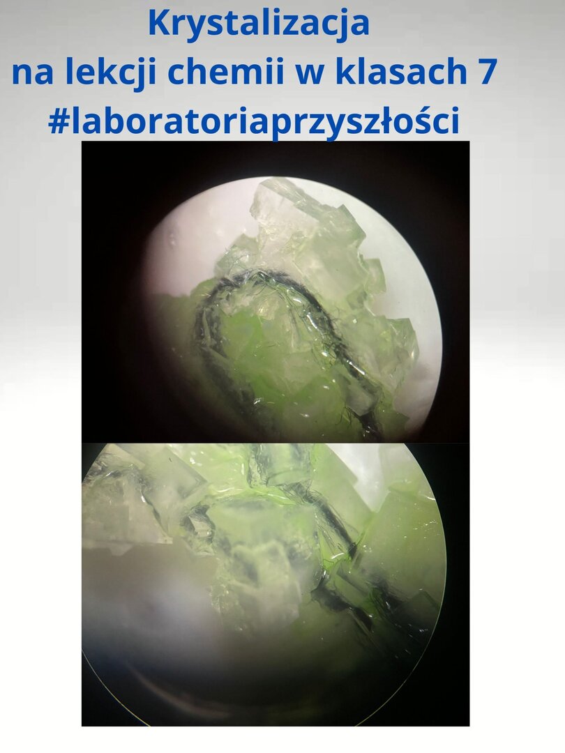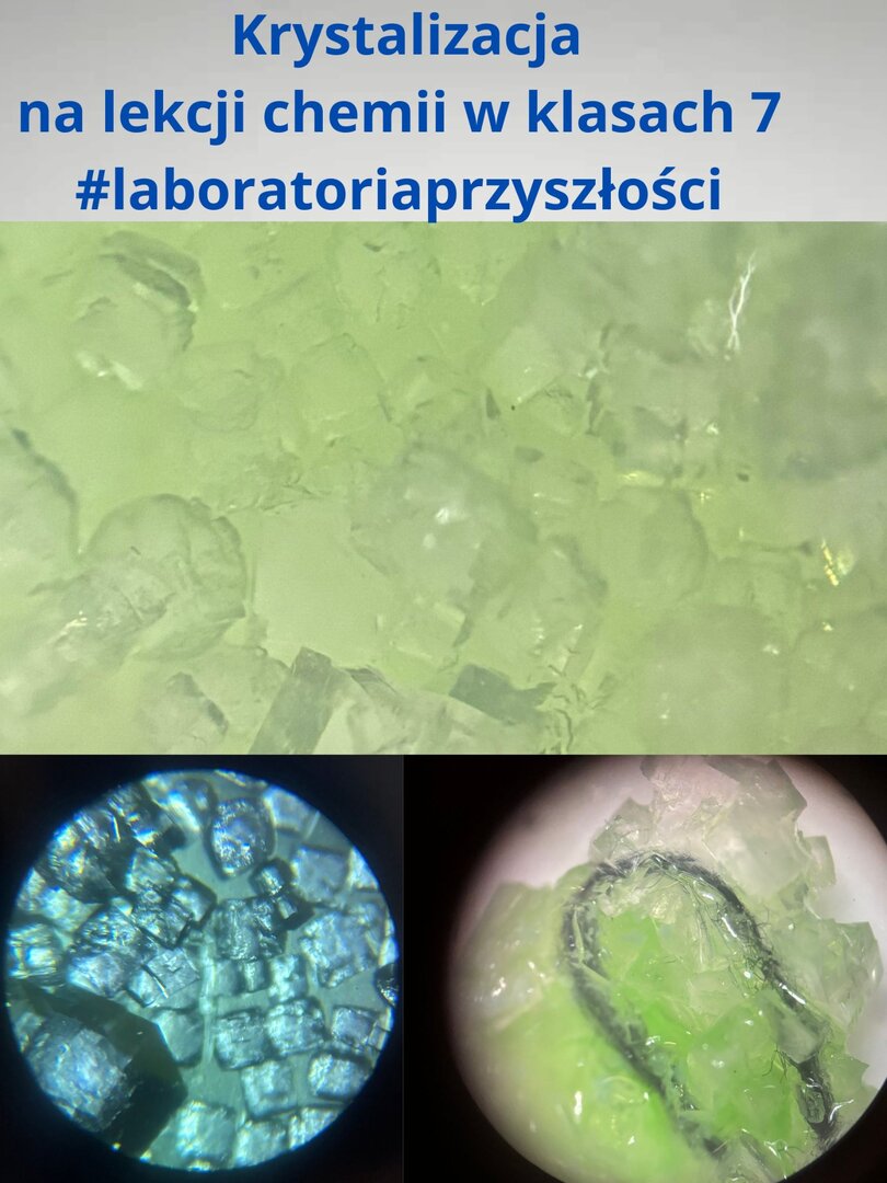 Przy okazji realizacji tematyki związanej z rodzajami mieszanin i sposobami ich rozdzielania, uczniowie klas 7 wykonali krystalizację soli kuchennej.