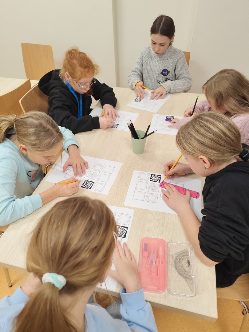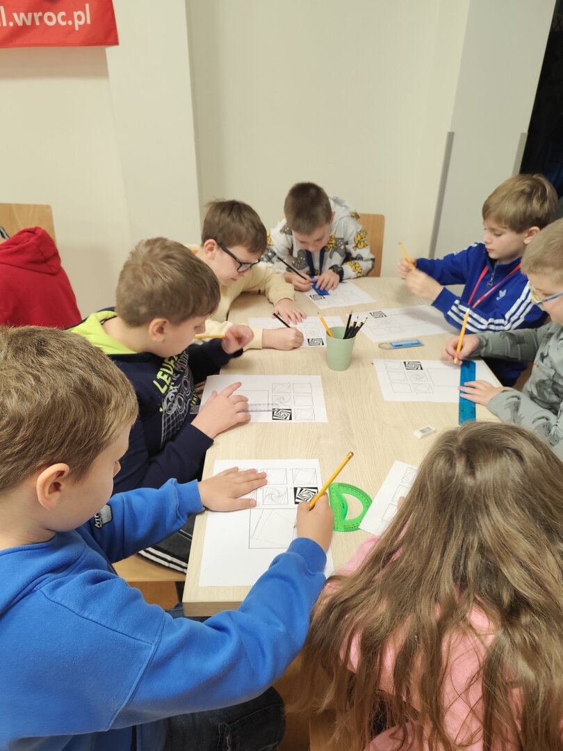 wykonali ćwiczenia na koncentrację oraz eksperymenty związane z iluzją optyczną. Na koniec dowiedzieli się jak nazywa się kierunek w sztuce bazujący na iluzjach optycznych i sami wcielili się w artystów kierunku Op - art i postarali się samodzielnie wykonać dzieło o tej tematyce.