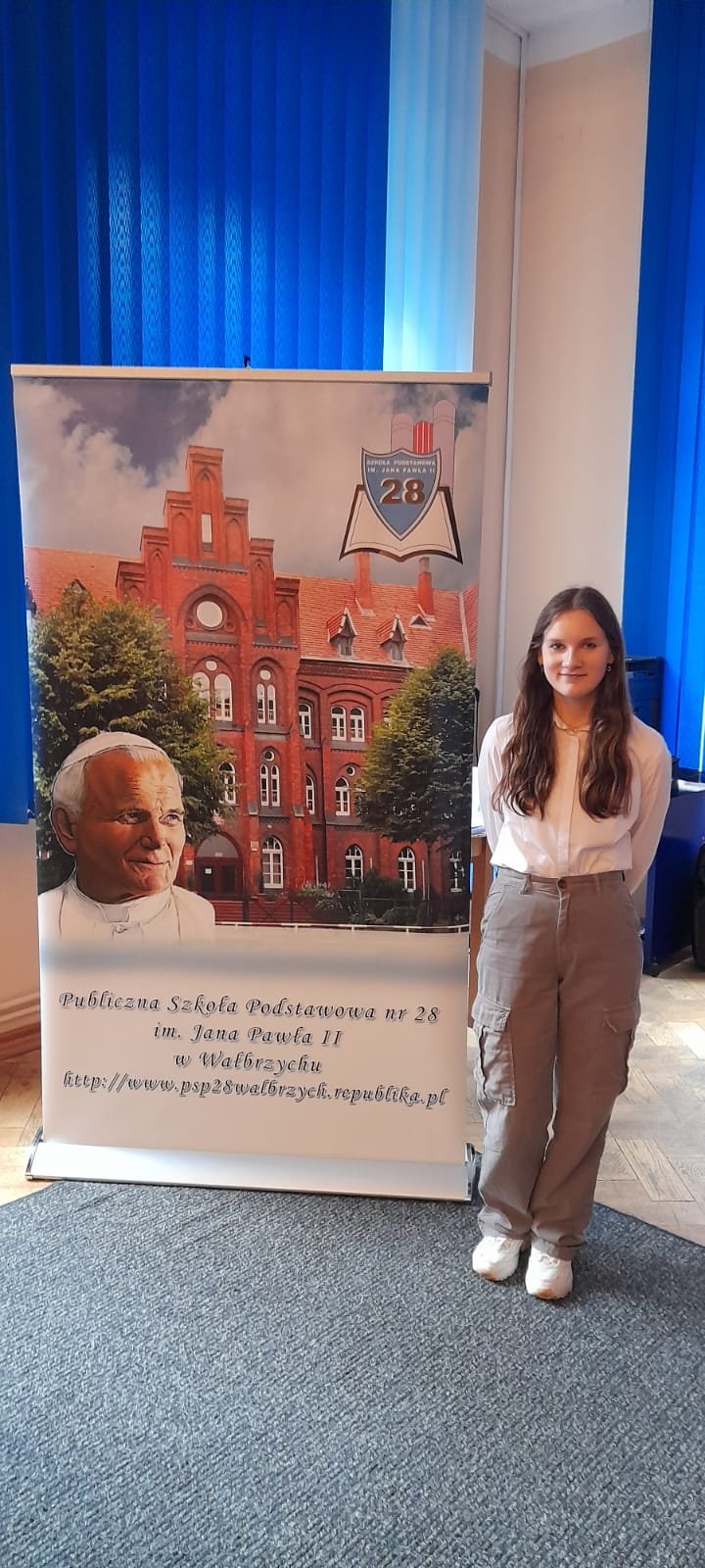Jury konkursu naszej uczennicy - Małgorzacie Zdral z kl.7c przyznało wyróżnienie. Odbiór nagrody nastąpił w czasie uroczystej gali w SP 28 dnia 30.10.2024 r.