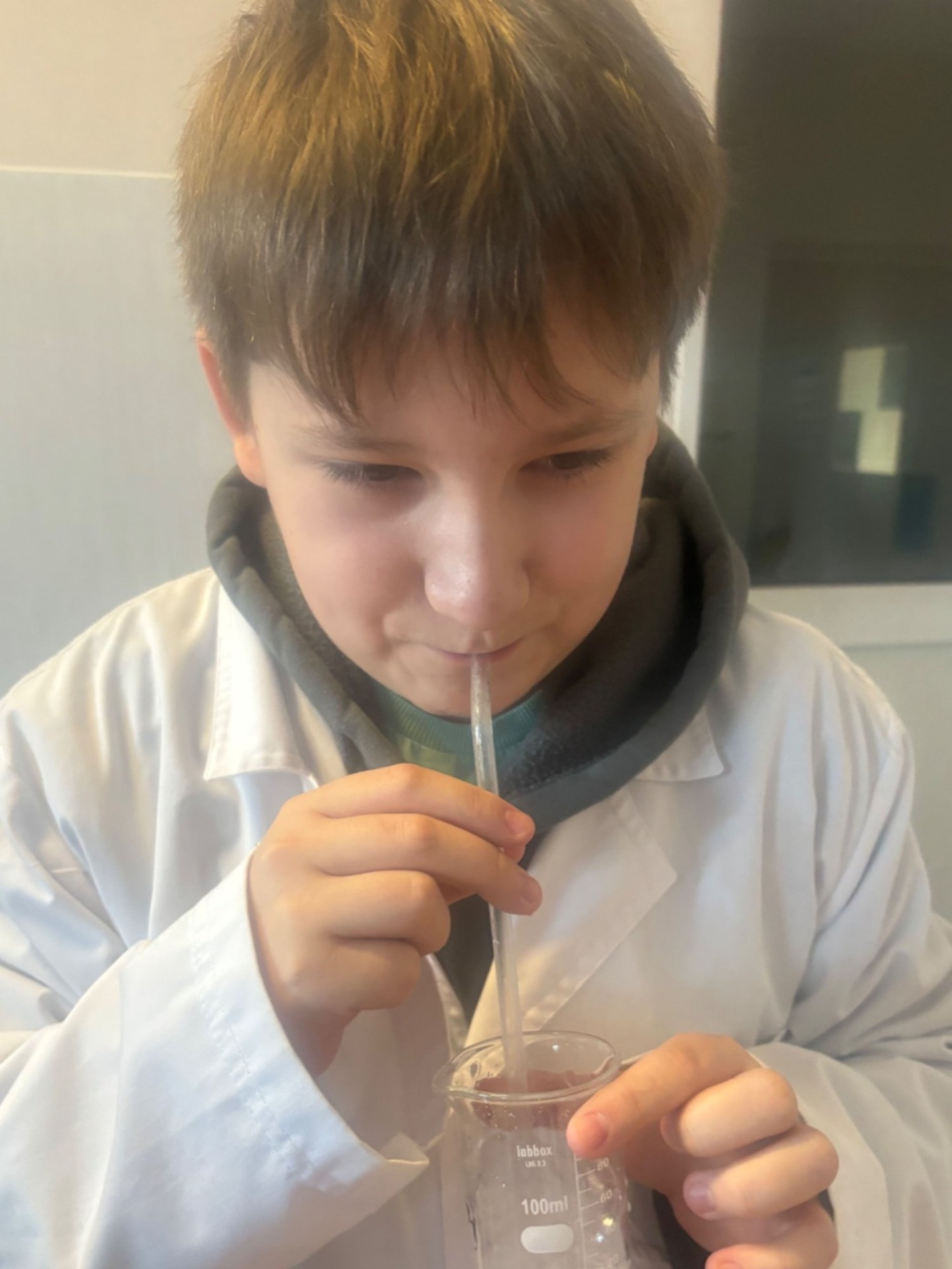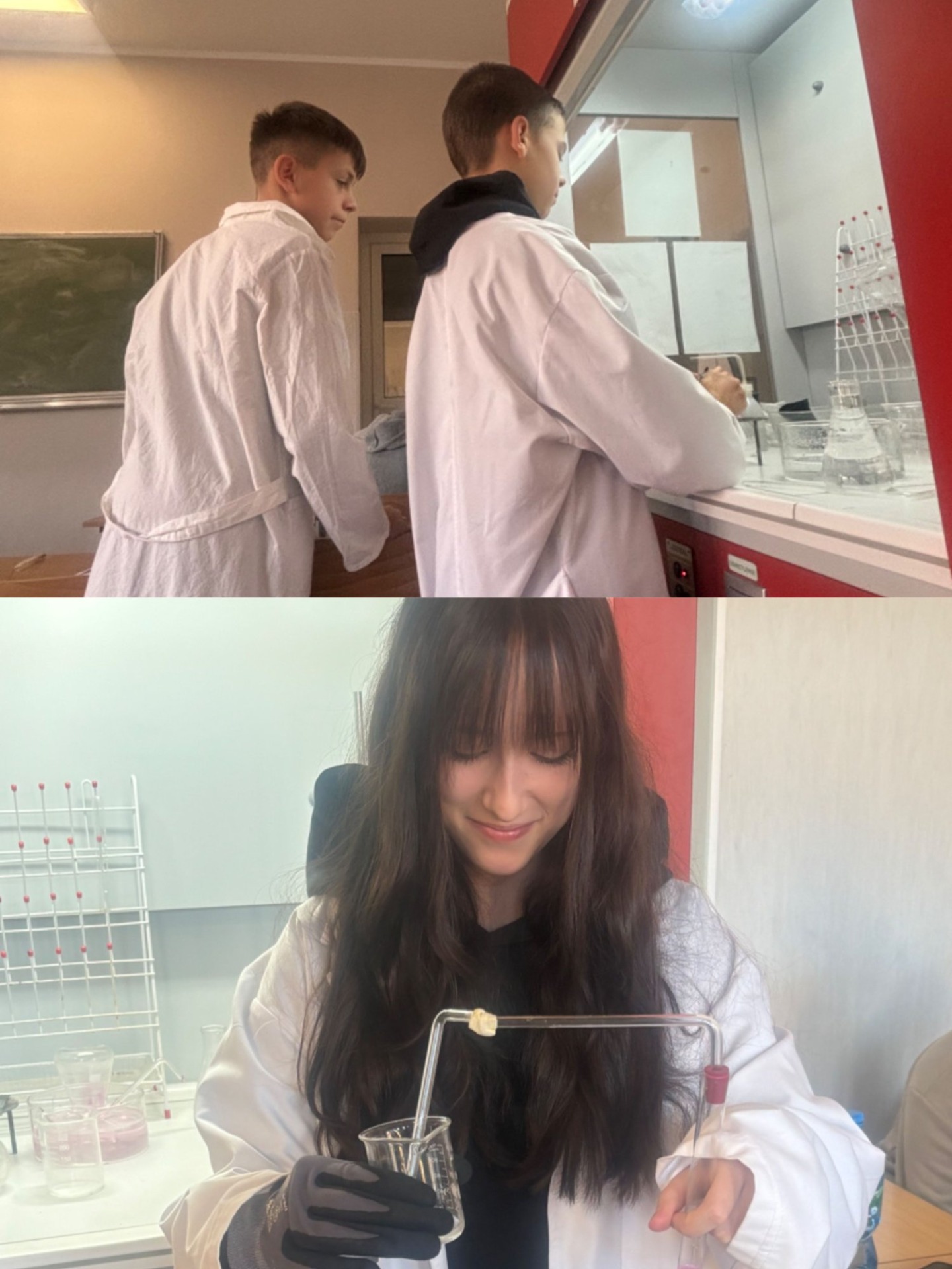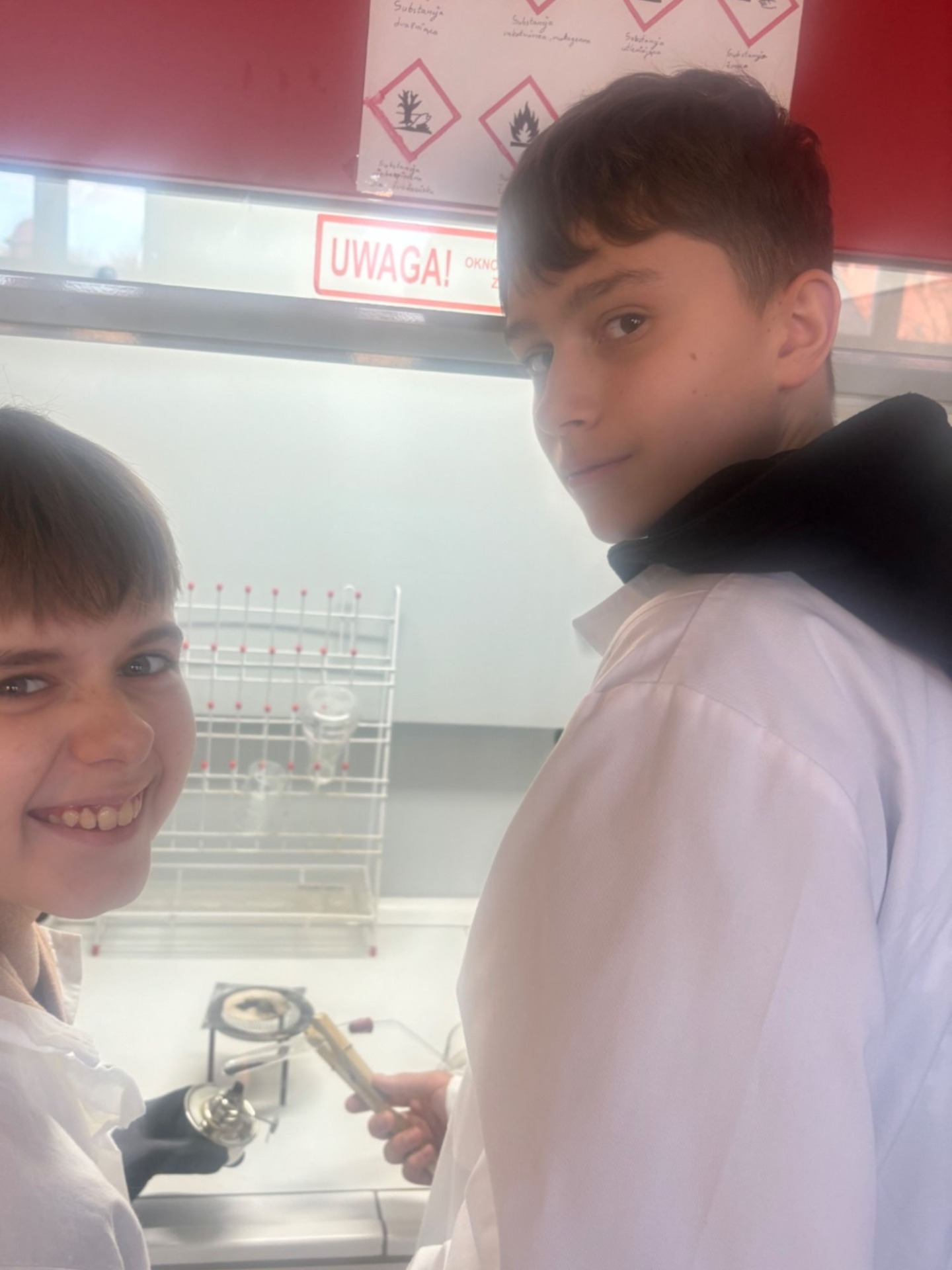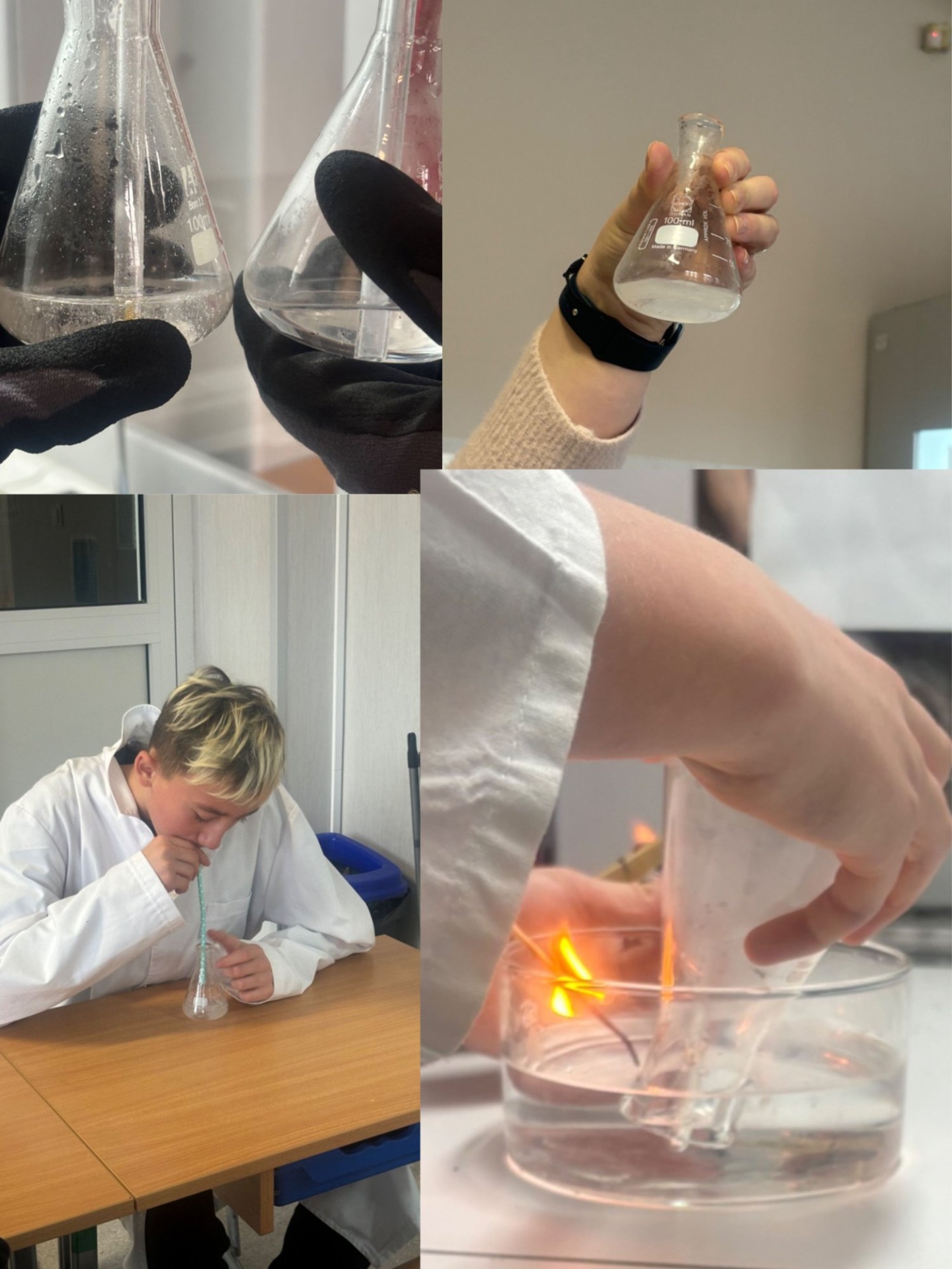Na lekcjach chemii uczniowie klas 7, wykonując doświadczenia chemiczne, otrzymali tlen i tlenek węgla(IV).