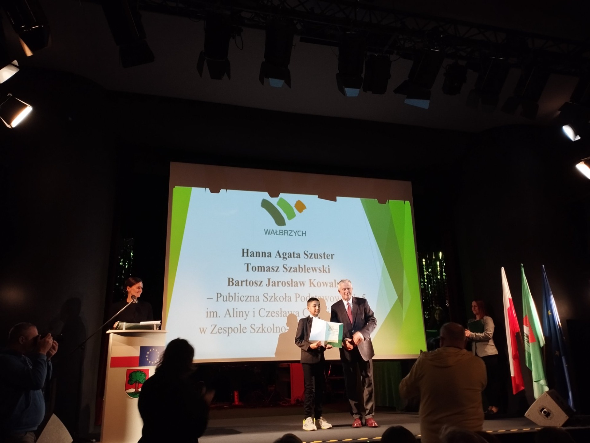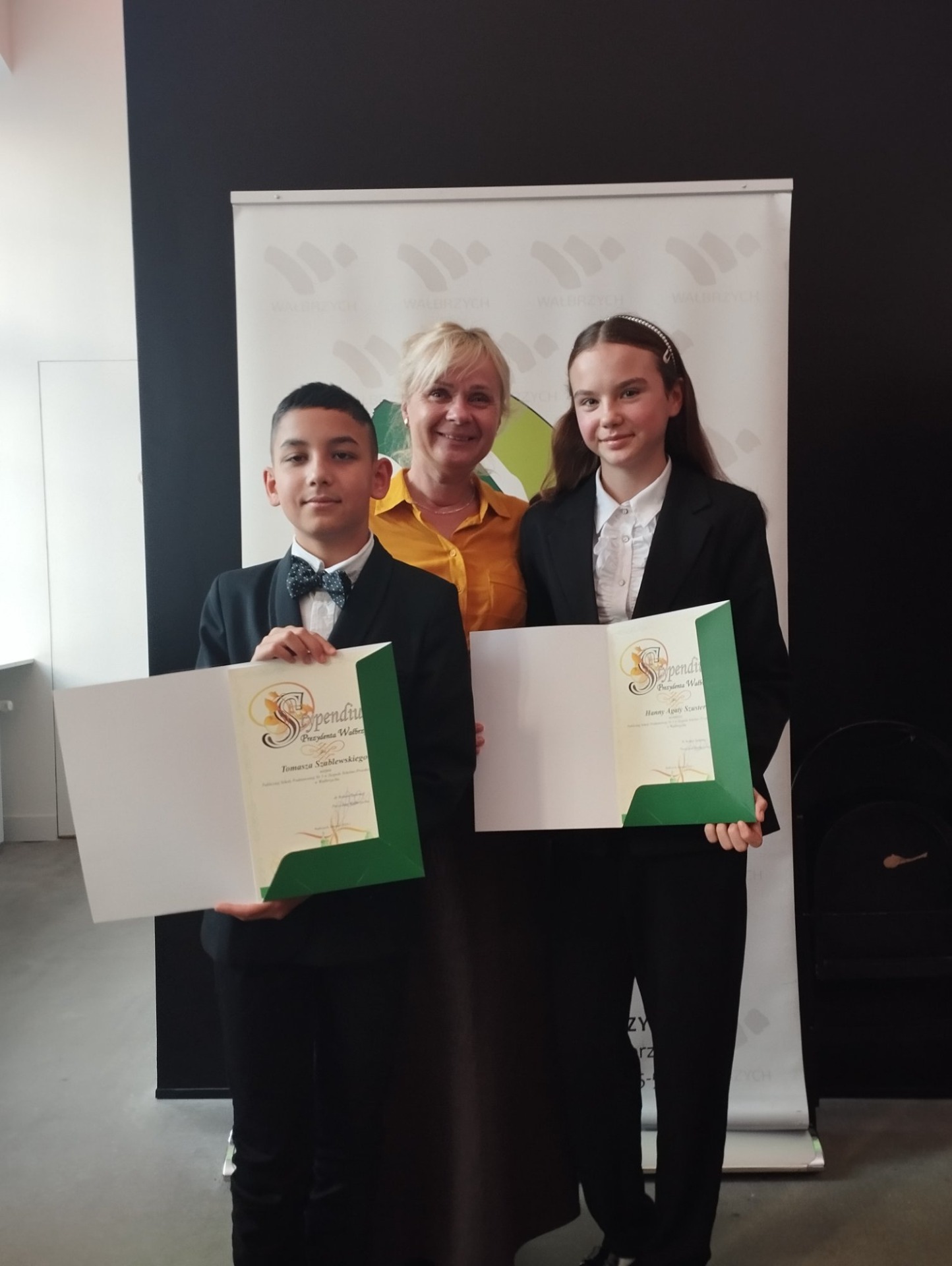 Hanna Szuster z klasy 6b, Tomasz Szablewski z klasy 6c oraz Bartosz Kowalski odebrali z rąk Prezydenta Wałbrzycha, dr Roman Szełemej stypendia za szczególne osiągnięcia naukowe!