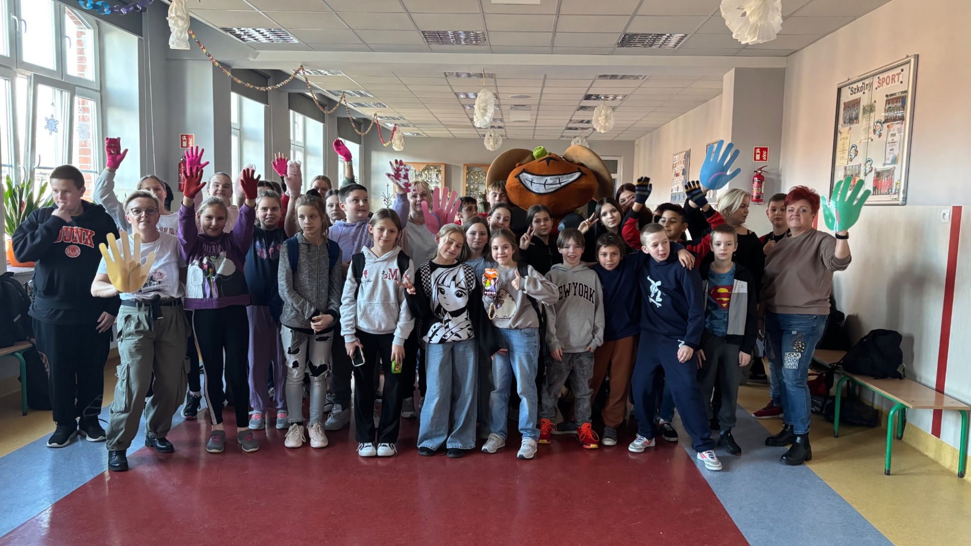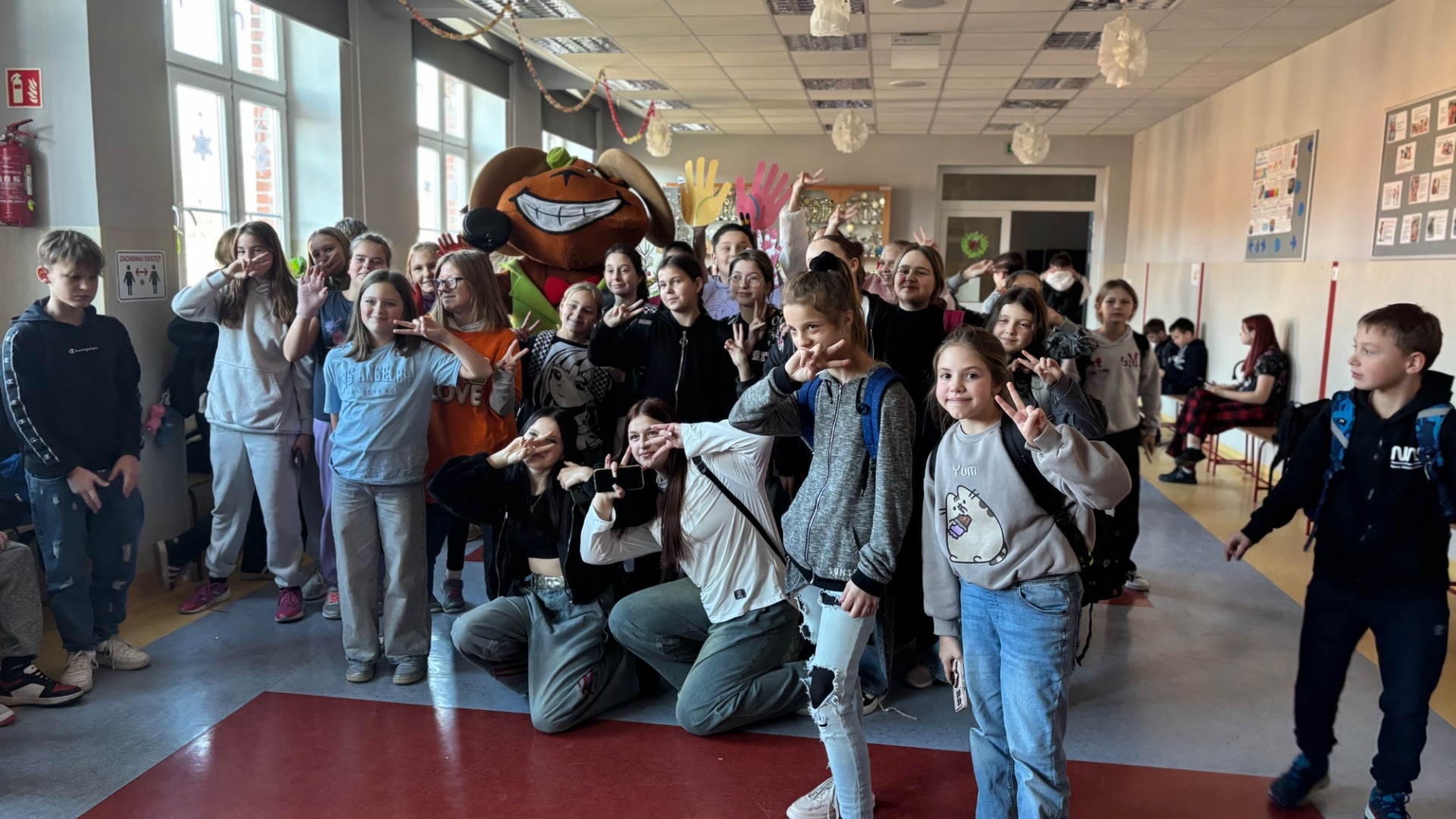 W dniu dzisiejszym odwiedził nas wałbrzyski Moofi, który z okazji Dnia Wolontariusza bawił się na przerwie z uczniami.