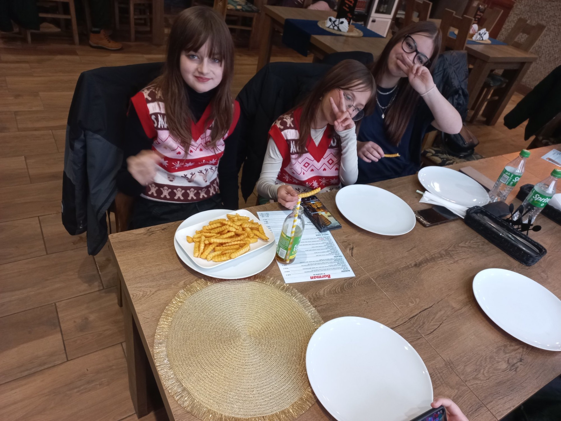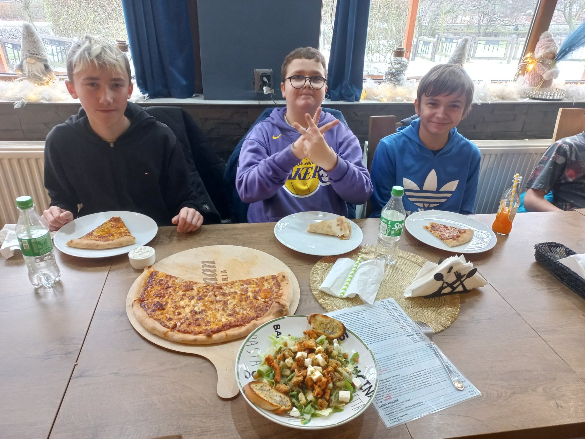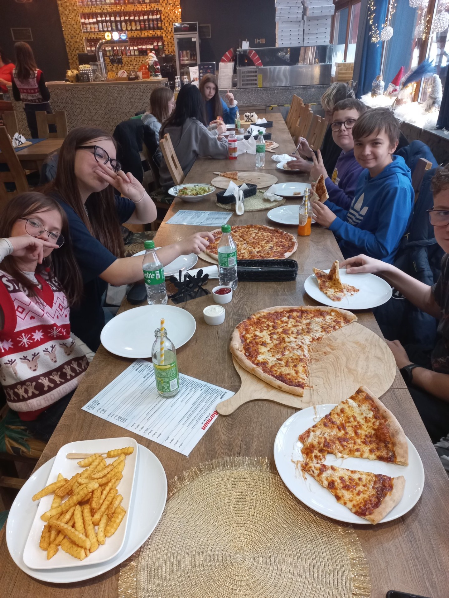 Klasa 7b z okazji Mikołajek klasowych, degustowała się pyszną pizzą w restauracji " Barman".