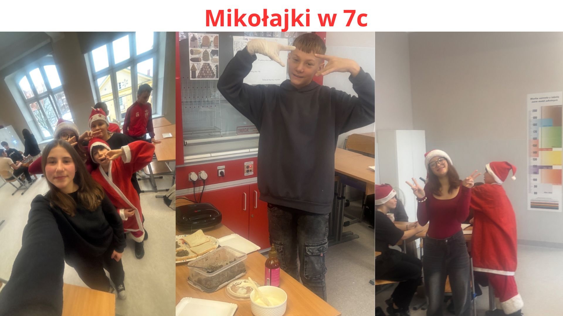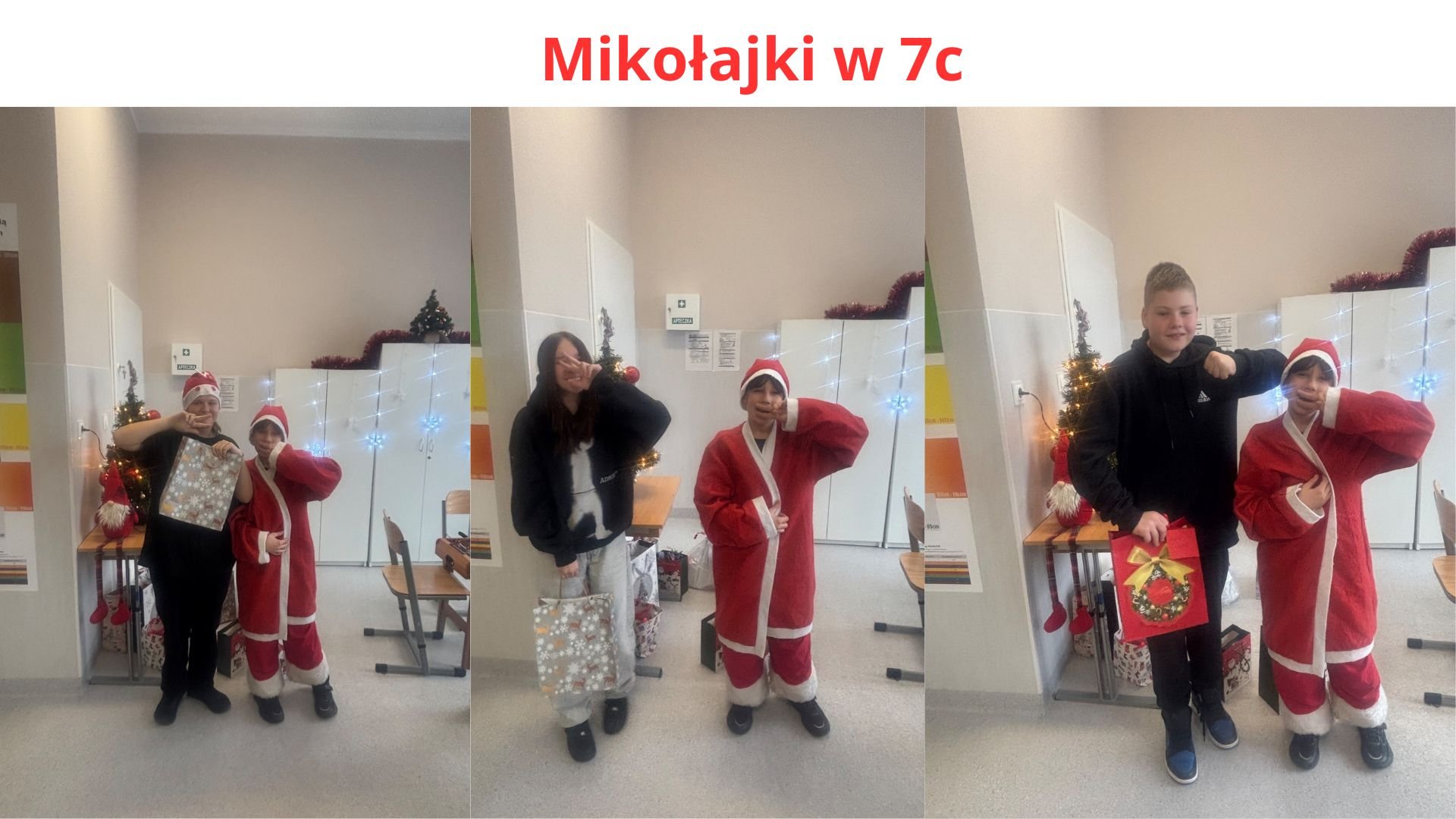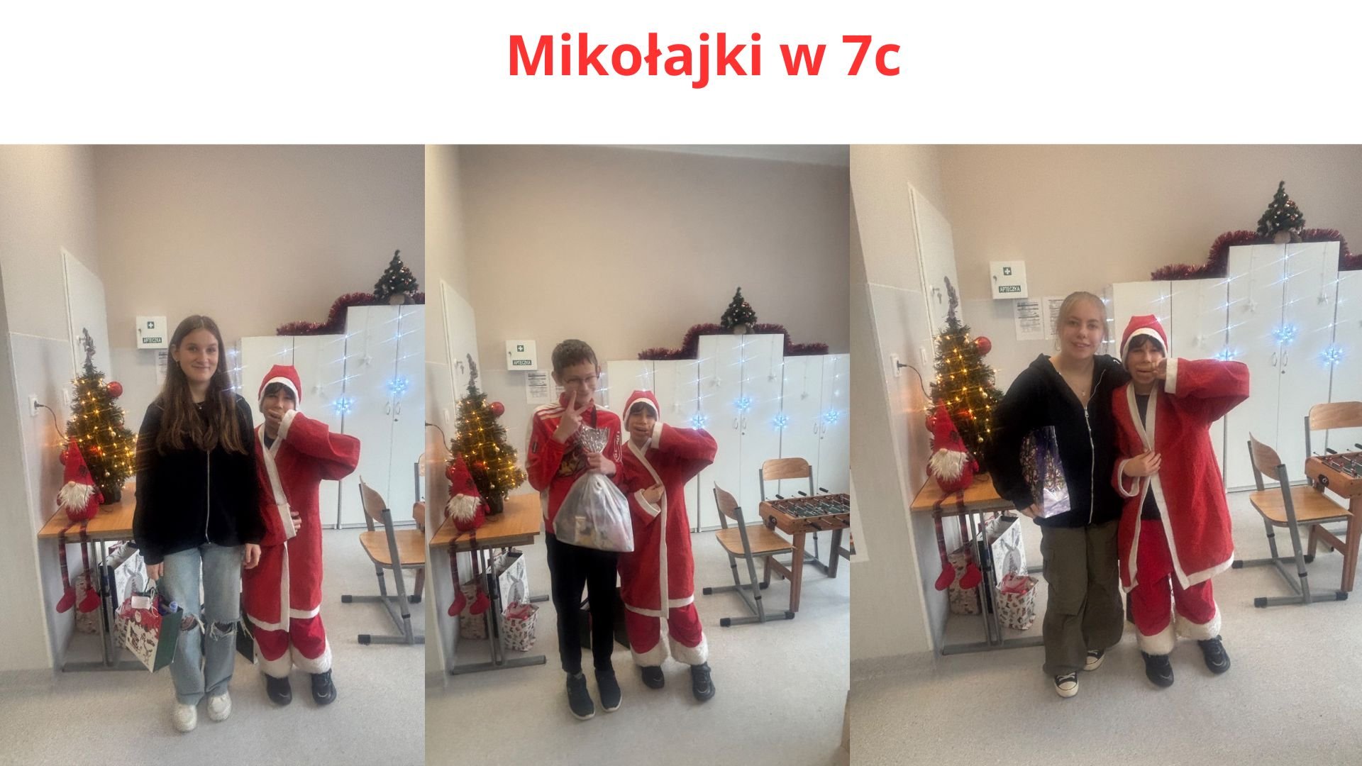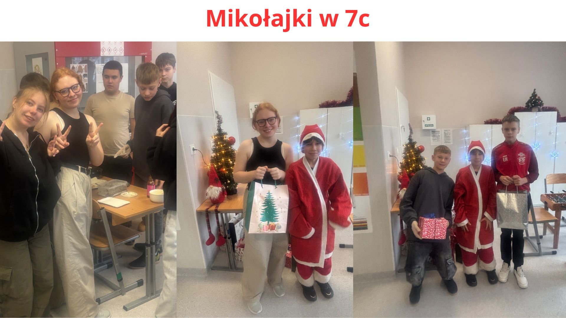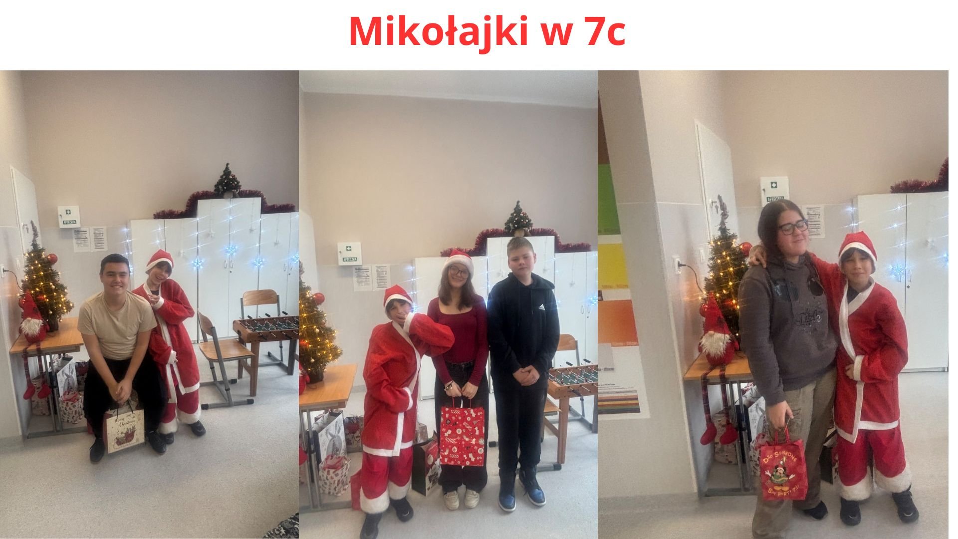 Dnia 6 grudnia w klasie 7c odbyły się mikołajki klasowe. To szczególny dzień dla wszystkich, którzy oczekują daru od Świętego Mikołaja. Tego dnia Mikołaj odwiedził wszystkich uczniów. Każda osoba z klasy przygotowała prezent dla swojej koleżanki lub kolegi.