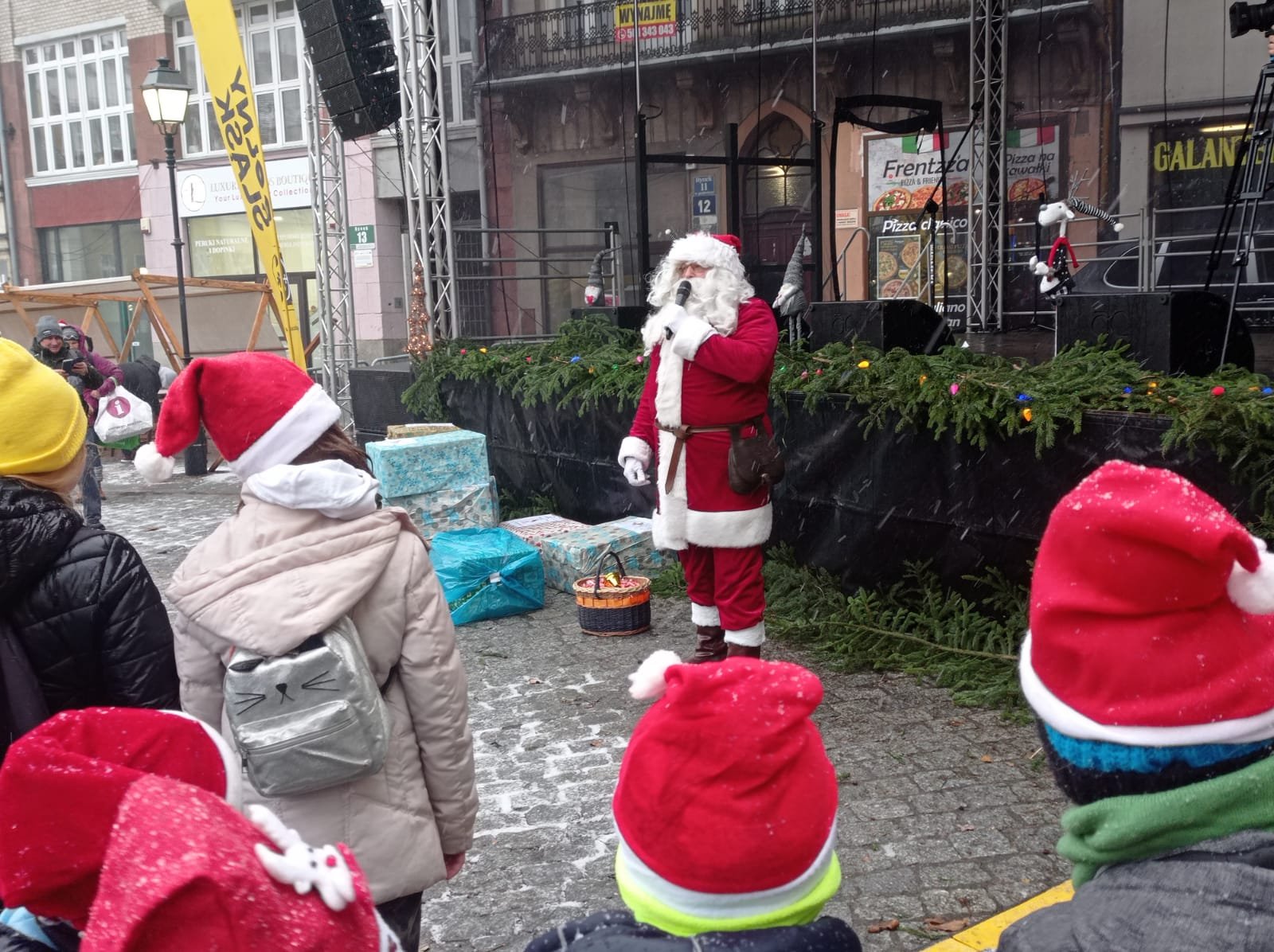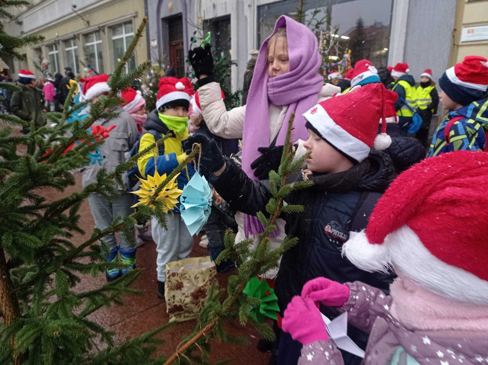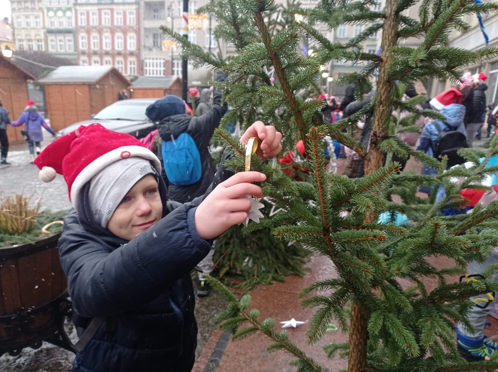 Pod takim hasłem rozpoczął się udział klasy 2c w uroczystym otwarciu Jarmarku Bożonarodzeniowego w Wałbrzychu, podczas którego odbyło się spotkanie z samym św. Mikołajem. Po rozgrzewającej zabawie oraz gimnastyce, dzieci z ochotą przystąpiły do dekorowania naszej szkolnej choinki.🎄 Mimo, że pogoda nas nie rozpieszczała, to uśmiechy nie schodziły z twarzy dzieci 🙂
