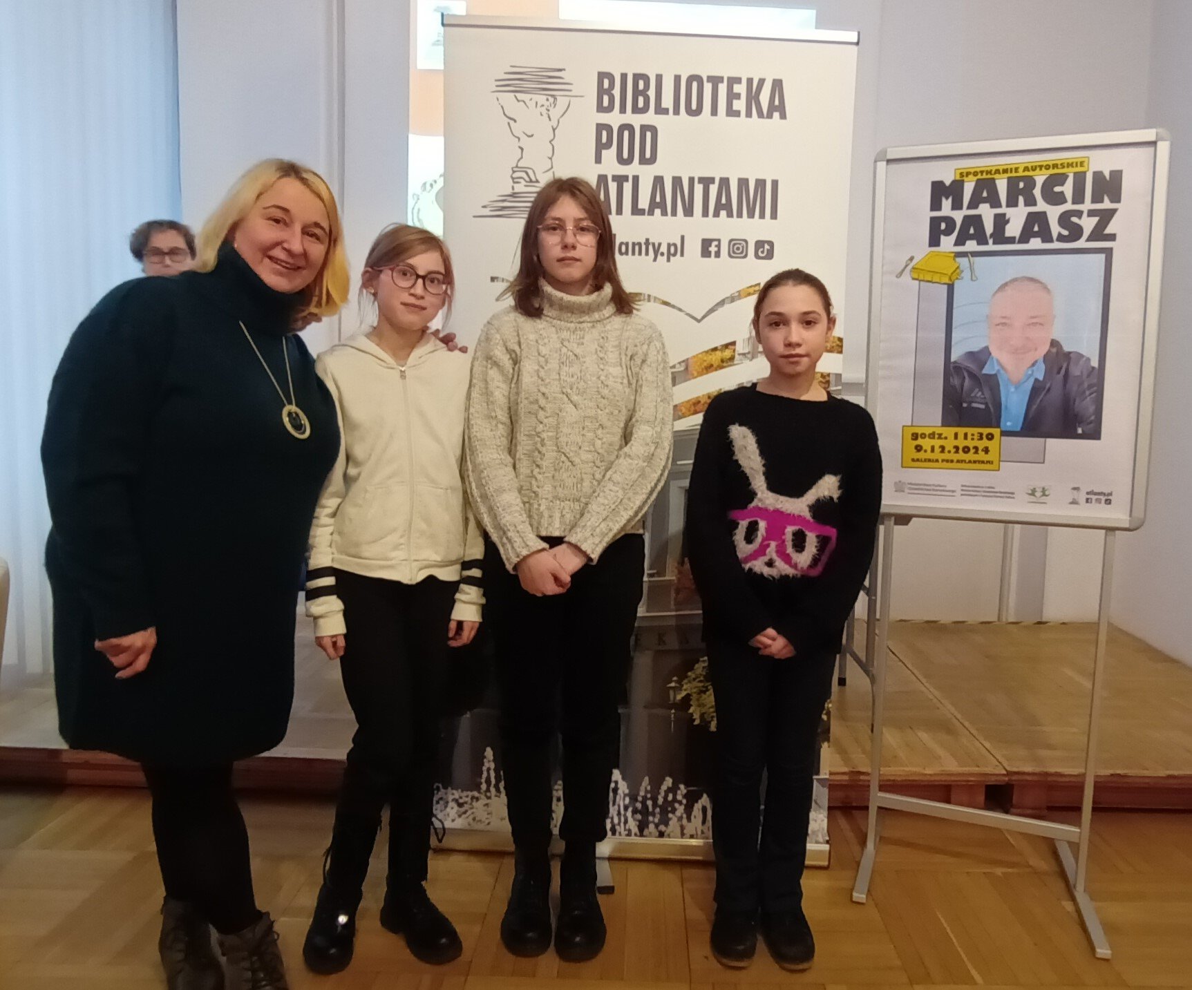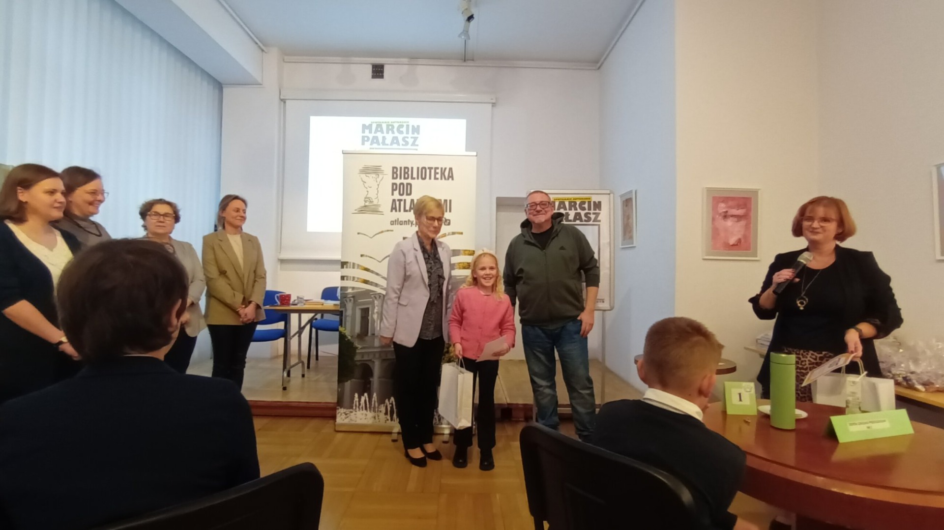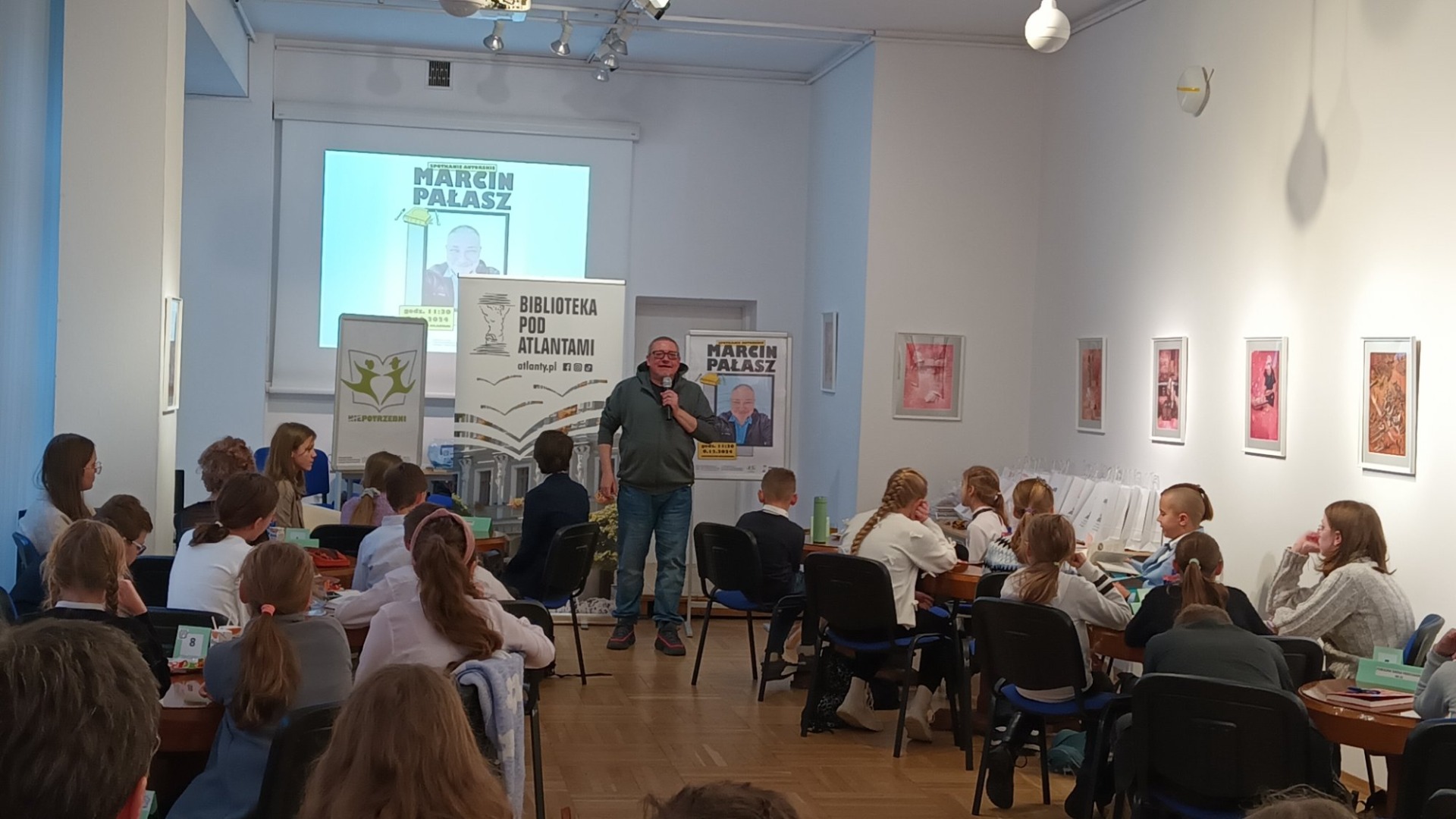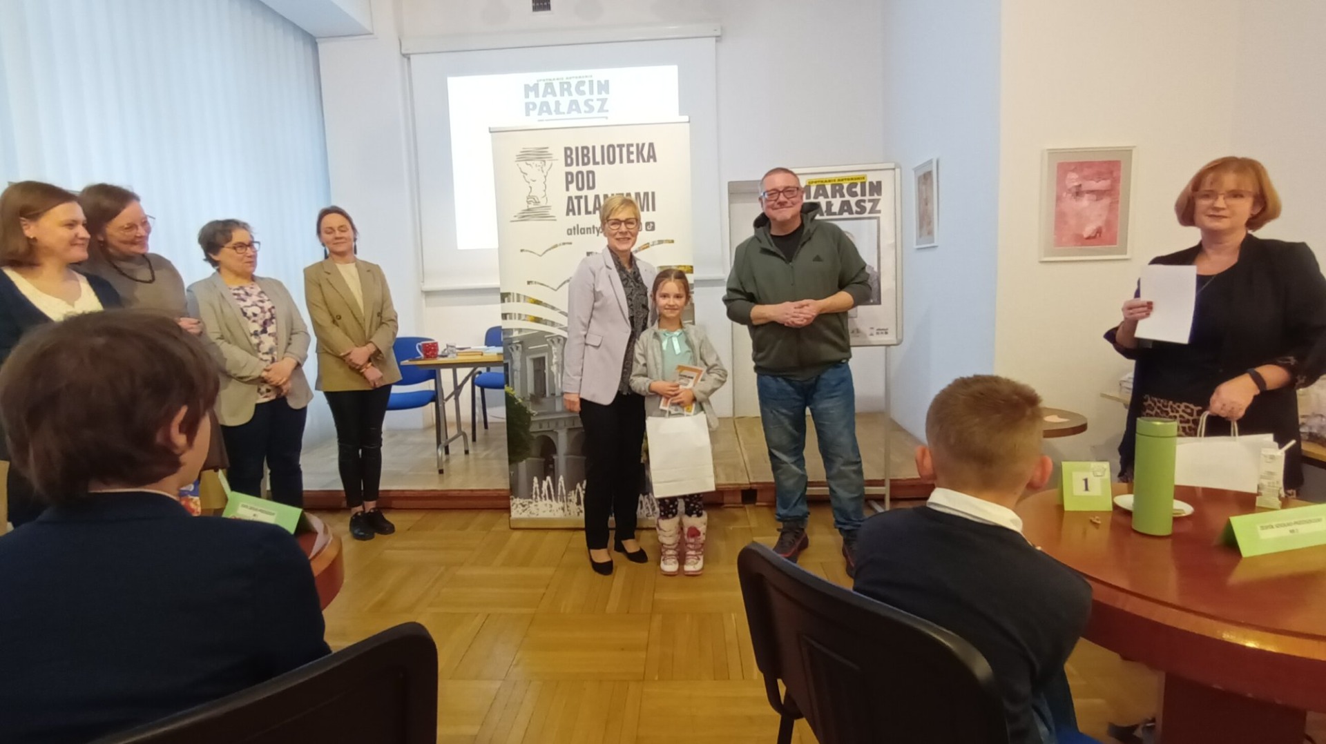Do konkursu zaproszeni zostali uczniowie klas 4-6, których zadaniem było wnikliwe przeczytanie dwóch książek Marcina Pałasza. Dla każdej klasy – 4, 5 i 6 – przygotowano inne tytuły, co sprawiło, że uczestnicy musieli zmierzyć się z różnorodnymi treściami i wykazać się szeroką wiedzą na temat przeczytanych lektur. Rywalizacja była zacięta – 10 szkół musiało wykazać się ogromną wiedzą, bo pytania były naprawdę szczegółowe. Sam autor, gość honorowy konkursu, przyznał z uśmiechem, że nie na wszystkie potrafiłby odpowiedzieć! 😊