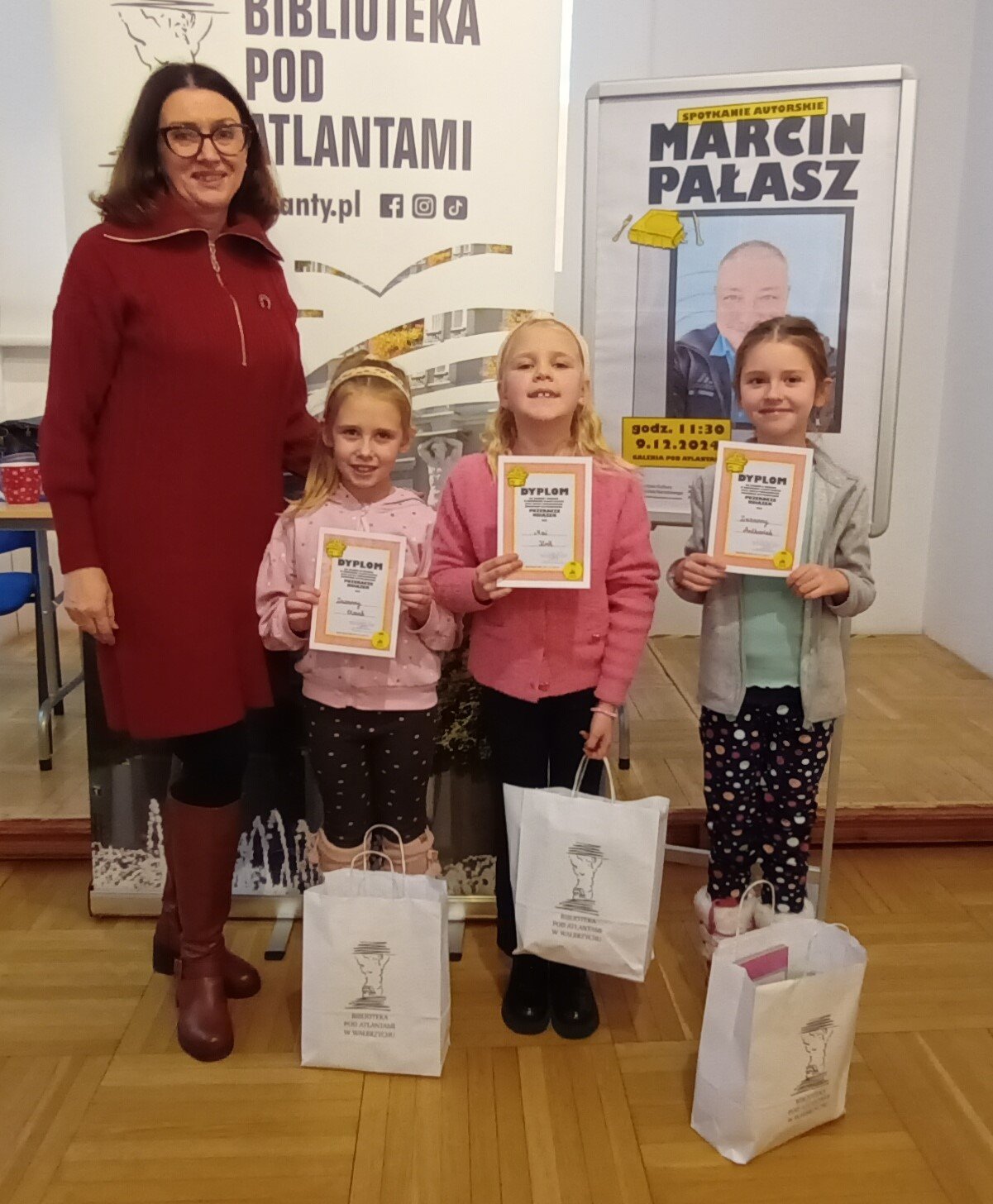 Z kolei w konkursie plastycznym dla klas 1-3 mamy powód do dumy! Uczennice z klasy 1a: Maja Król, Zuzia Antkowiak i Zuzia Olczak zostały laureatkami i otrzymały piękne nagrody.