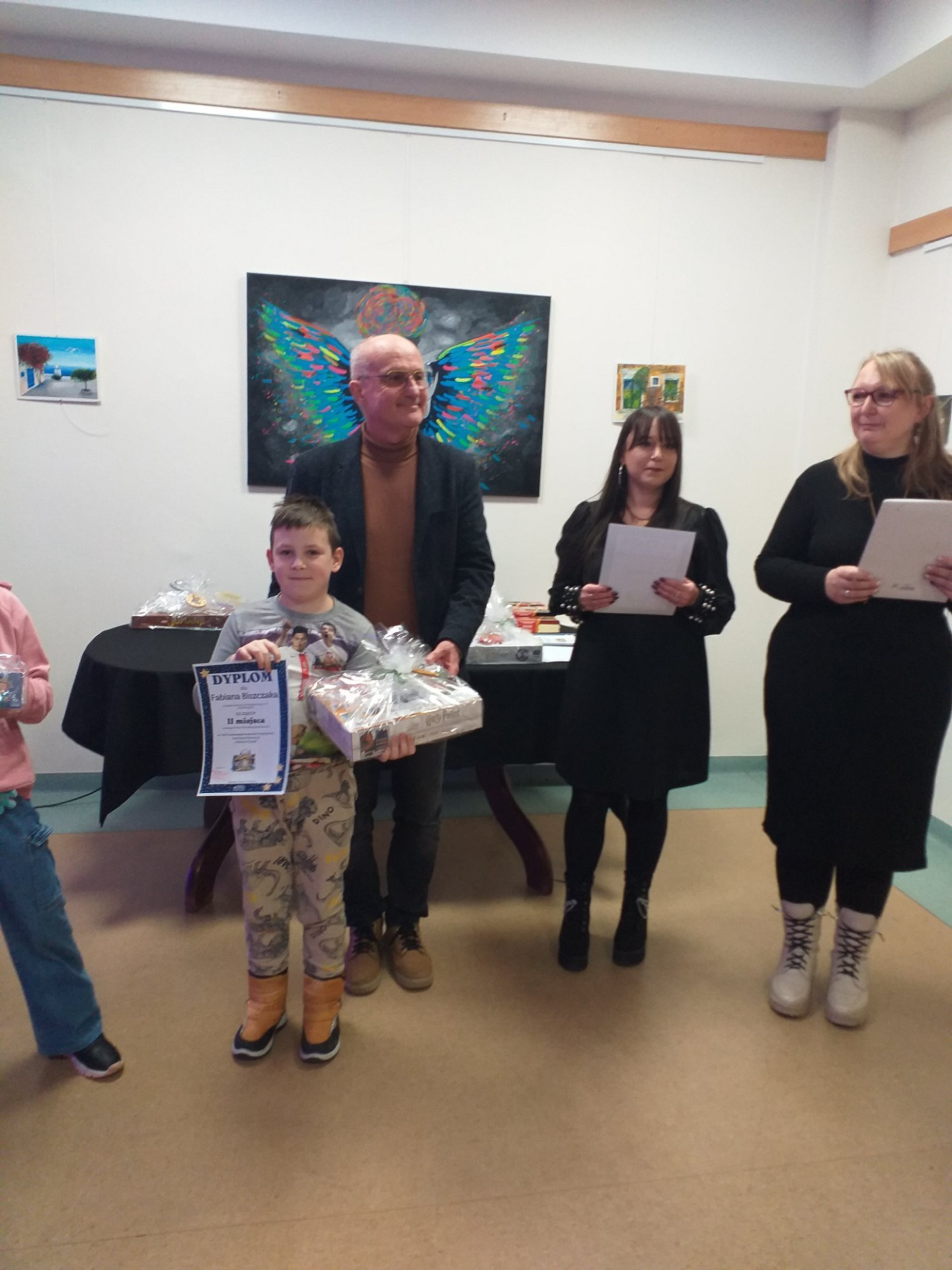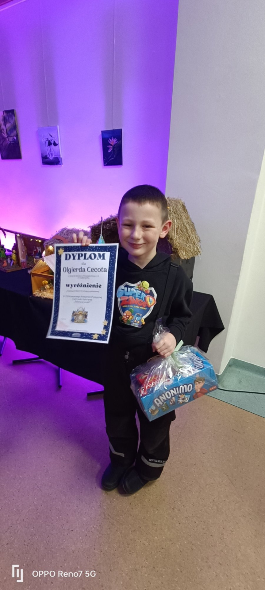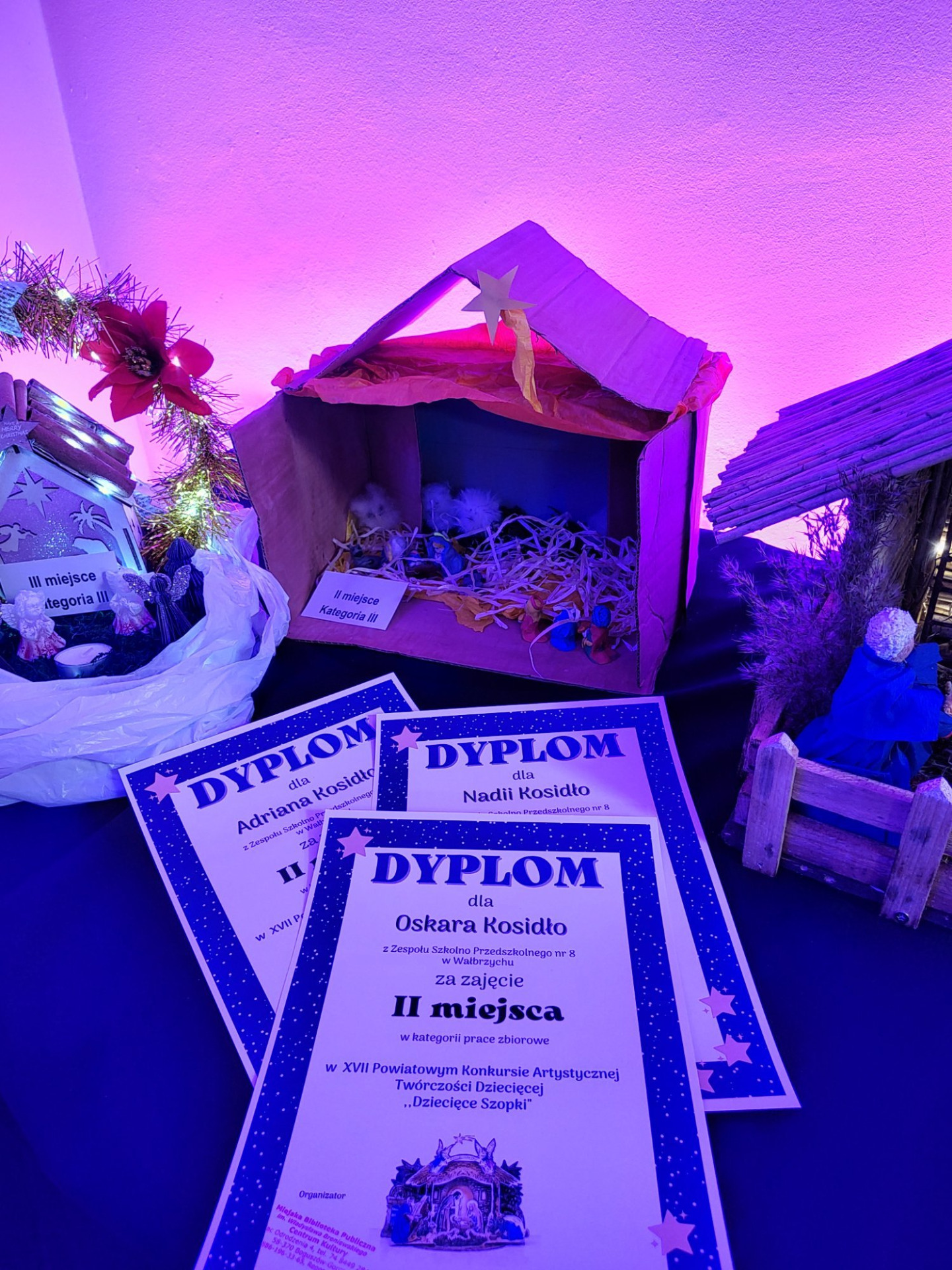 13 grudnia w Miejskiej Bibliotece Publicznej - Centrum Kultury w Boguszowie Gorcach odbyło się wręczenie nagród w XVII Powiatowym Konkursie Artystycznej Twórczości Dziecięcej "Dziecięce Szopki". Z naszej szkoły zostało zawiezionych aż 11 szopek, wykonanych przez uczniów w 3 kategoriach, pod kierunkiem pani Katarzyny Żurek i pani Agnieszki Halickiej. Prace wykonane przez dzieci z pomocą ich rodziców były tak piękne, że z 29 prac konkursowych zostało wyróżnionych i nagrodzonych aż 5 prac uczniów z naszej szkoły: