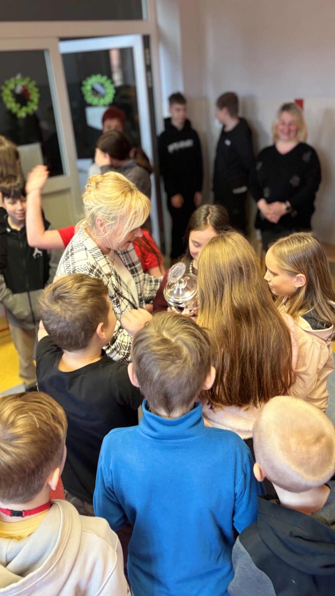 Największe emocje wśród uczniów wzbudziło przekazanie pucharu za najlepsze wyniki w nauce. Tym razem szkolne trofeum trafiło do czwartoklasistów.