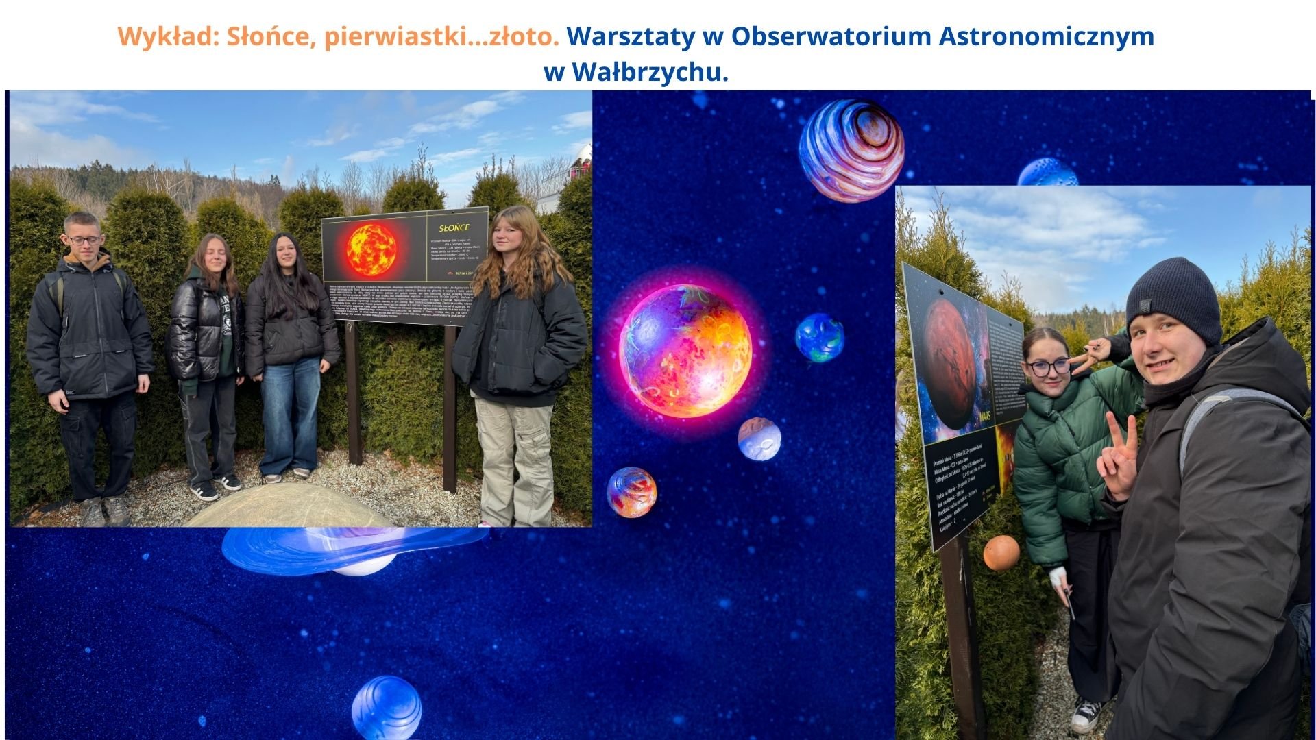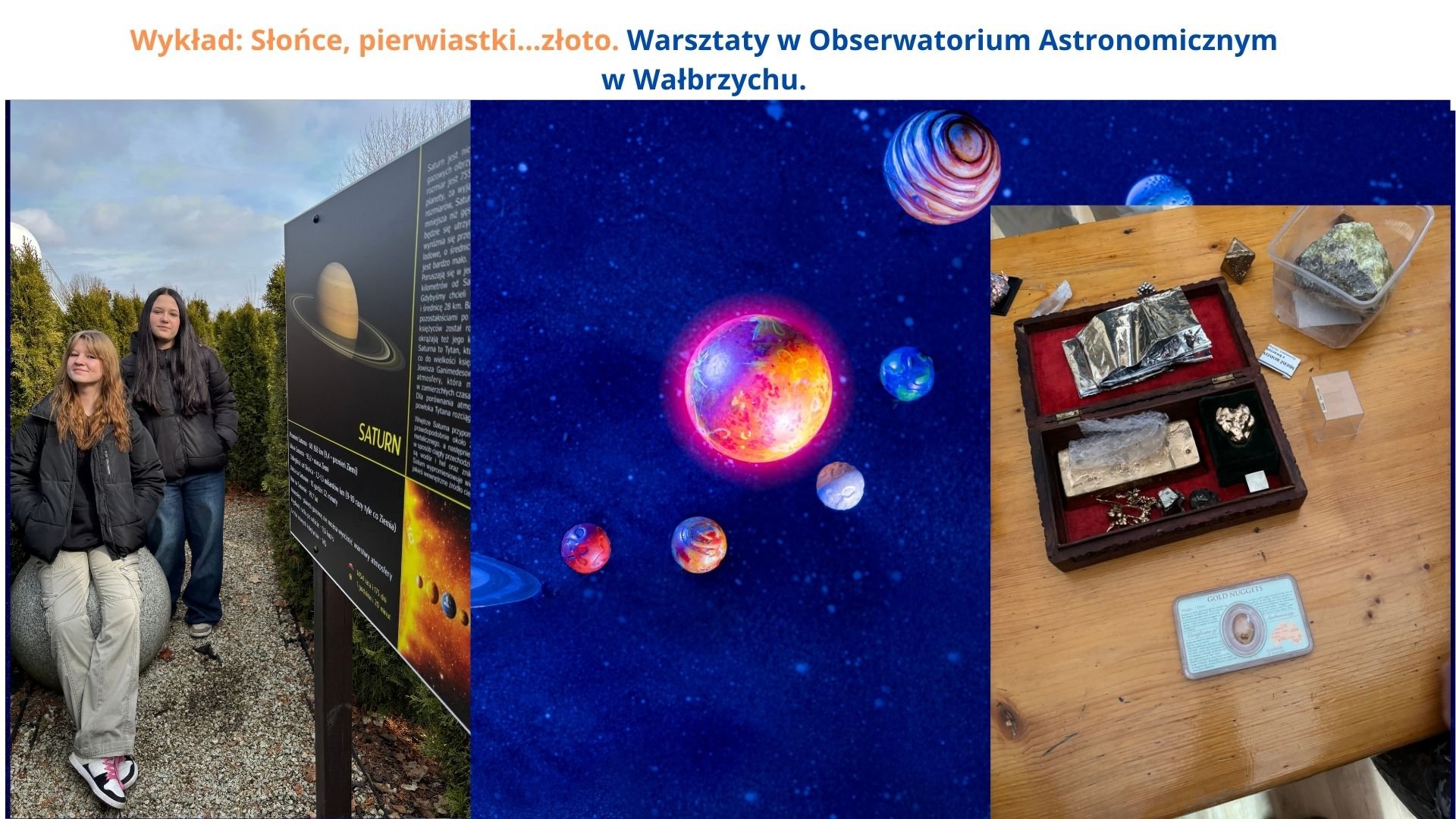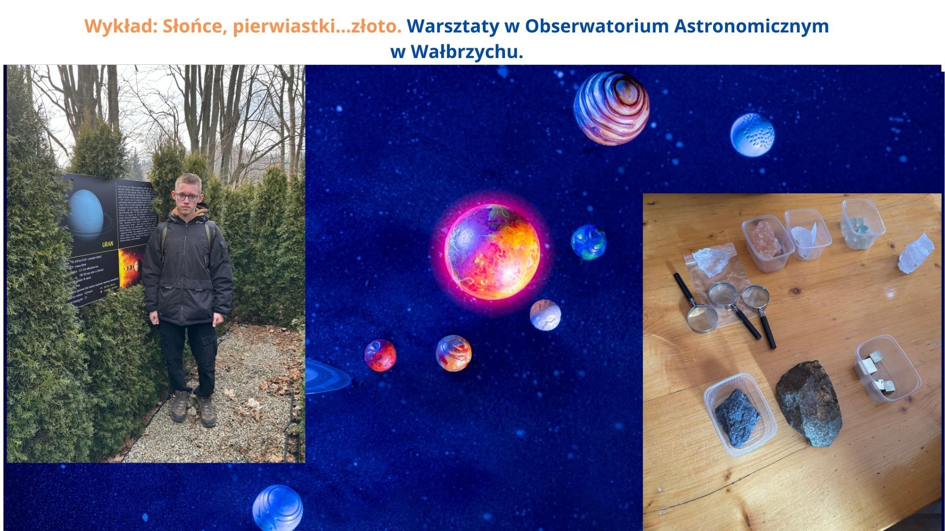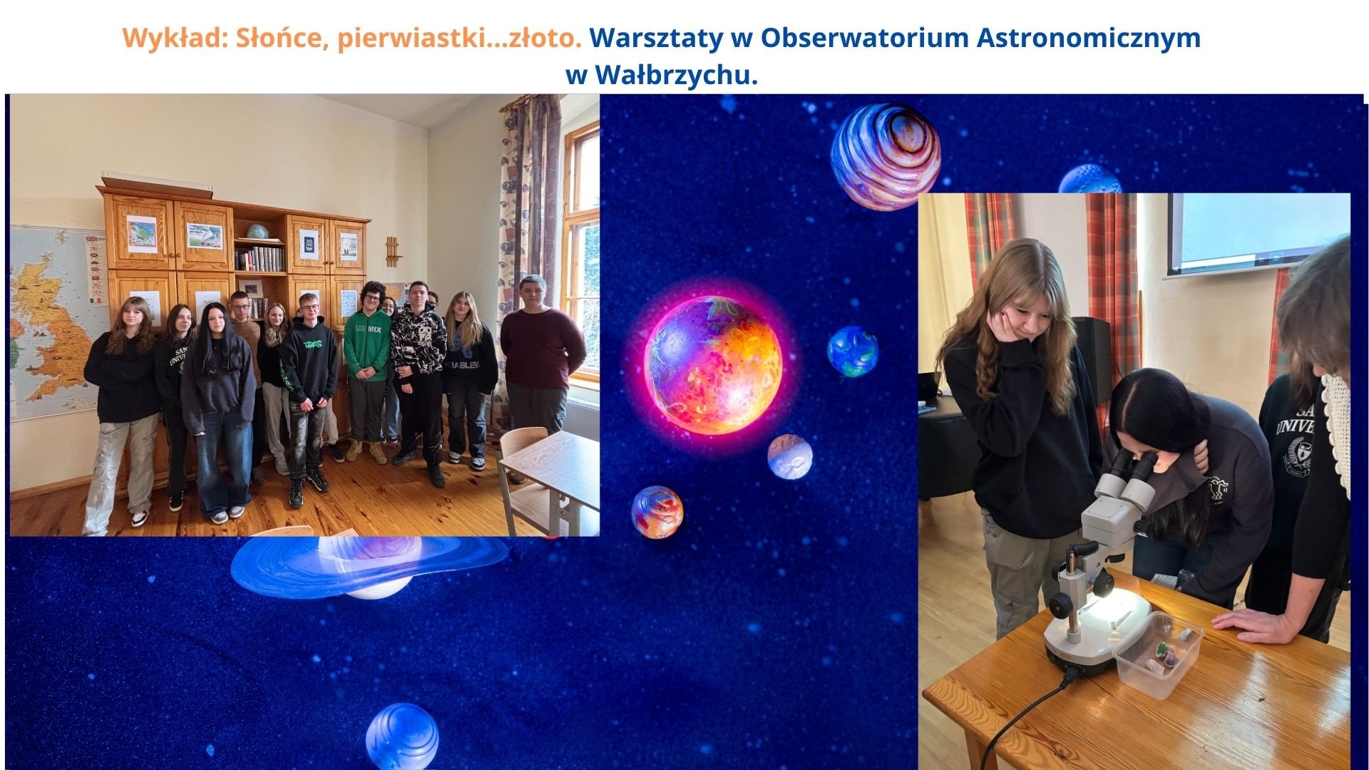 Uczniowie z klasy 8a wzięli udział w wykładzie pt: „ Słońce, pierwiastki… złoto” prowadzonym przez naukowców z Politechniki Wrocławskiej z Wydziału Geoinżynierii, Górnictwa i Geologii.