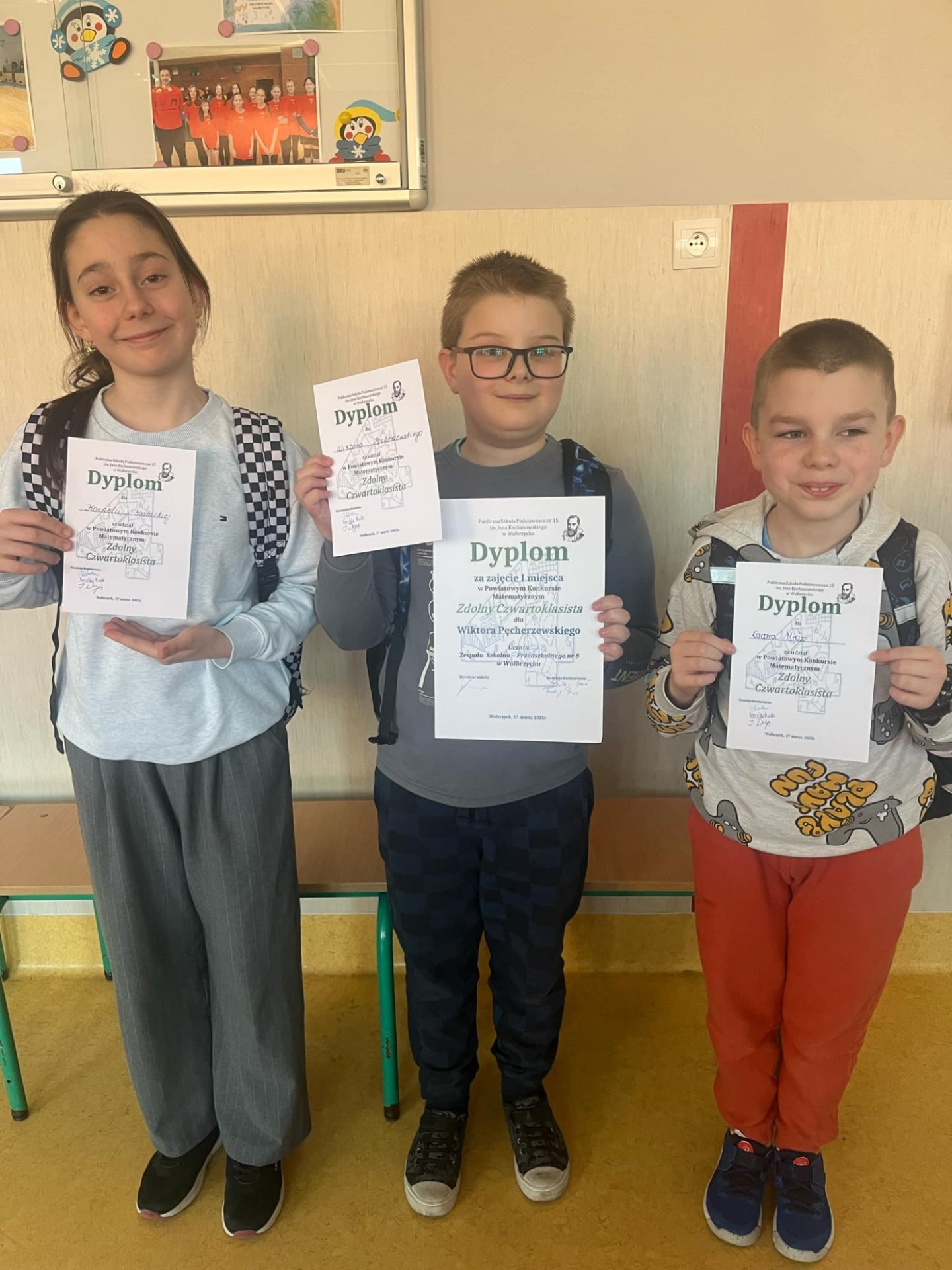 Naszą szkołę reprezentowali: Wiktor Pęcherzewski, Kornelia Sośnicka i Kacper Mróz – wszyscy spisali się świetnie, a Wiktor osiągnął ogromny sukces, zdobywając I miejsce!