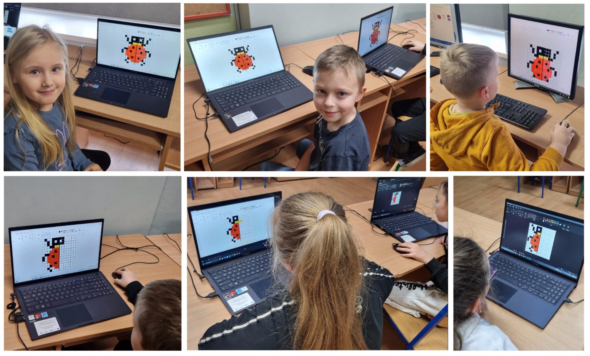 Aby przybliżyć dzieciom tajemnice matematyki w klasach pierwszych w marcu realizowane były tematy dotyczące obecności tej królowej nauk w życiu każdego człowieka. Najpierw dzieci rozwiązały krzyżówkę z hasłem „NATURA”. Potem zapoznały się z symetrią zauważalną w przyrodzie. Tematyka symetrii została wykorzystana także w kodowaniu, gdzie uczniowie w pracowni komputerowej kolorowali biedronki i motylki. Niektórym dzieciom to zadanie nie sprawiło żadnej trudności. Zajęcia były ciekawe i udowodniły, że matematyka jest wszędzie.