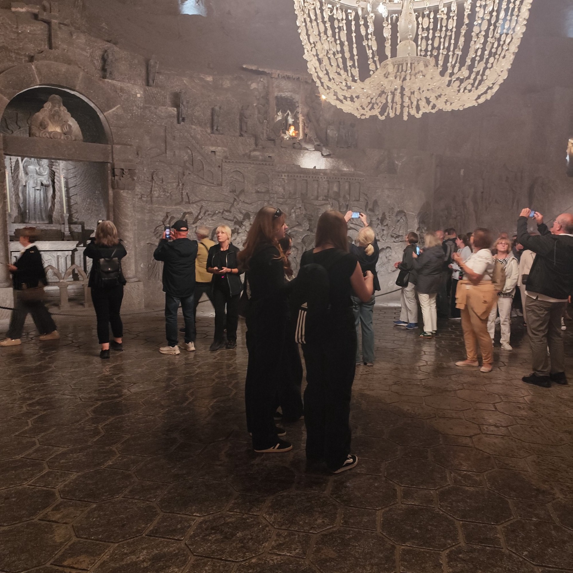 Drugi dzień naszej wycieczki rozpoczął się bardzo intensywnie – zaraz po śniadaniu udaliśmy się do słynnej Kopalni Soli w Wieliczce. Przewodnik opowiadał nam o historii kopalni, pokazywał solne korytarze, kaplice wykute w soli i podziemne jeziora. Największe wrażenie zrobiła na nas Kaplica św. Kingi – ogromna, przepięknie oświetlona i cała z soli!