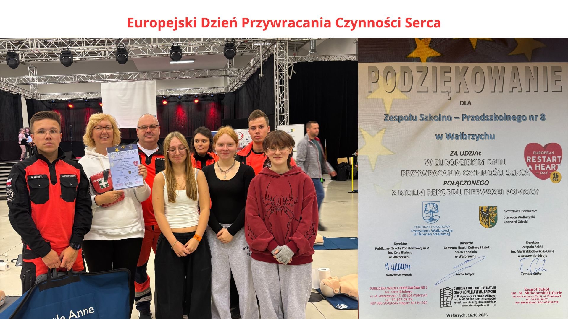 dumą informujemy, że klasa 8c wraz z wychowawcą wzięła udział w wydarzeniu zorganizowanym w ramach obchodów Europejskiego Dnia Przywracania Czynności Serca w Centrum Nauki, Kultury i Sztuki „Stara Kopalnia” w Wałbrzychu.