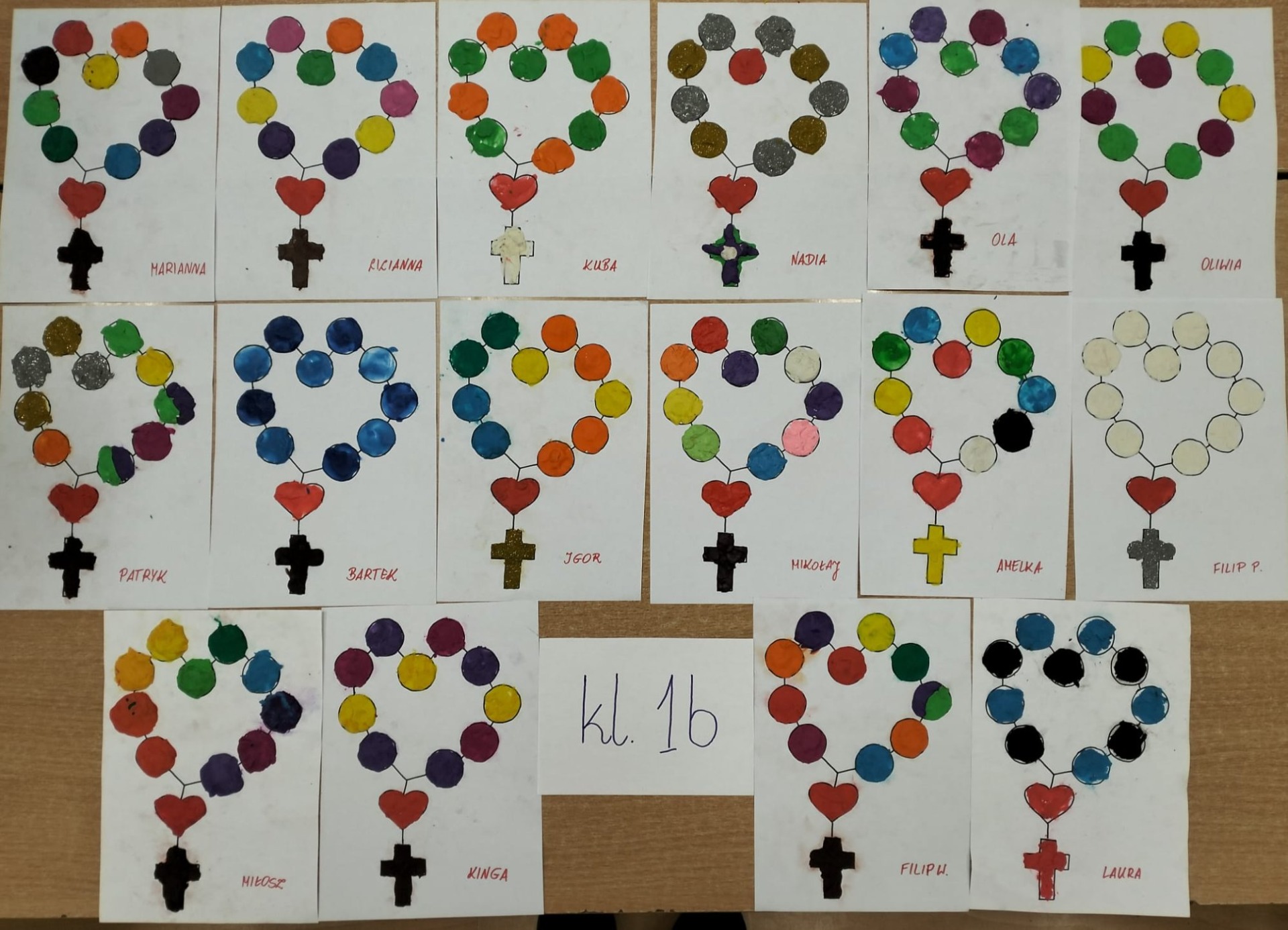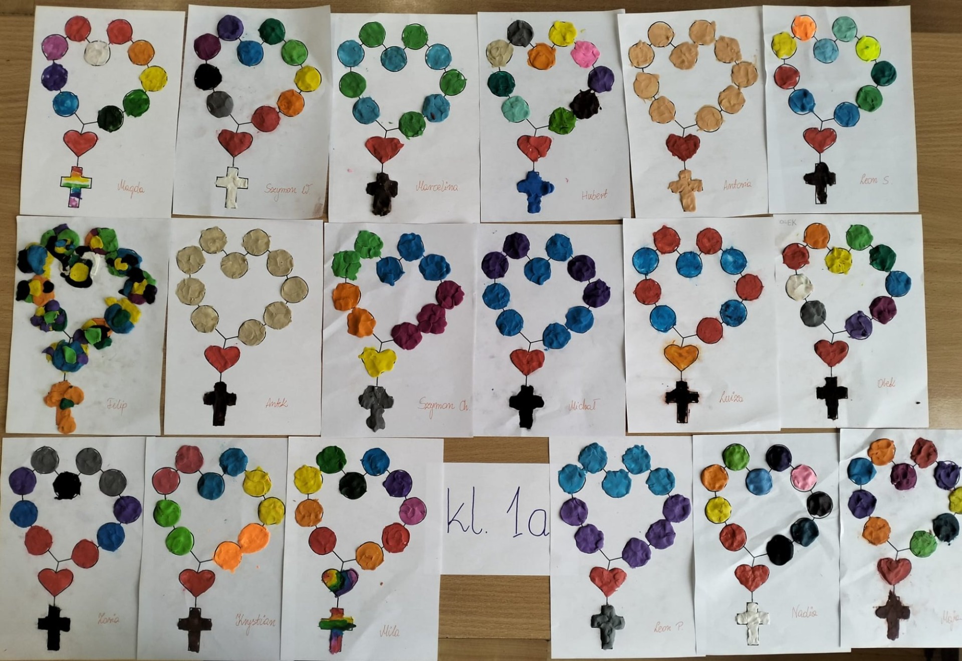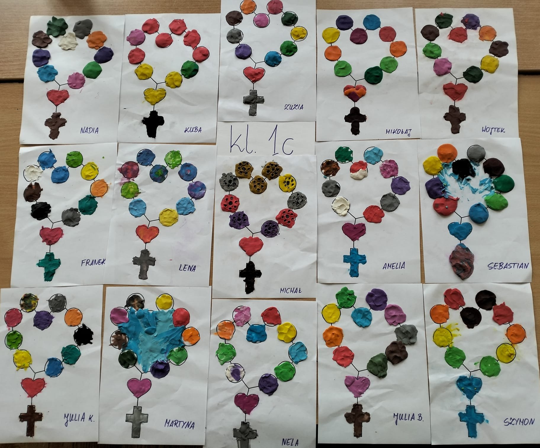 W ramach innowacji metodycznej "Wykorzystanie metod polisensorycznych na katechezie" uczniowie klas pierwszych wykonali w październiku piękne różańce z plasteliny.