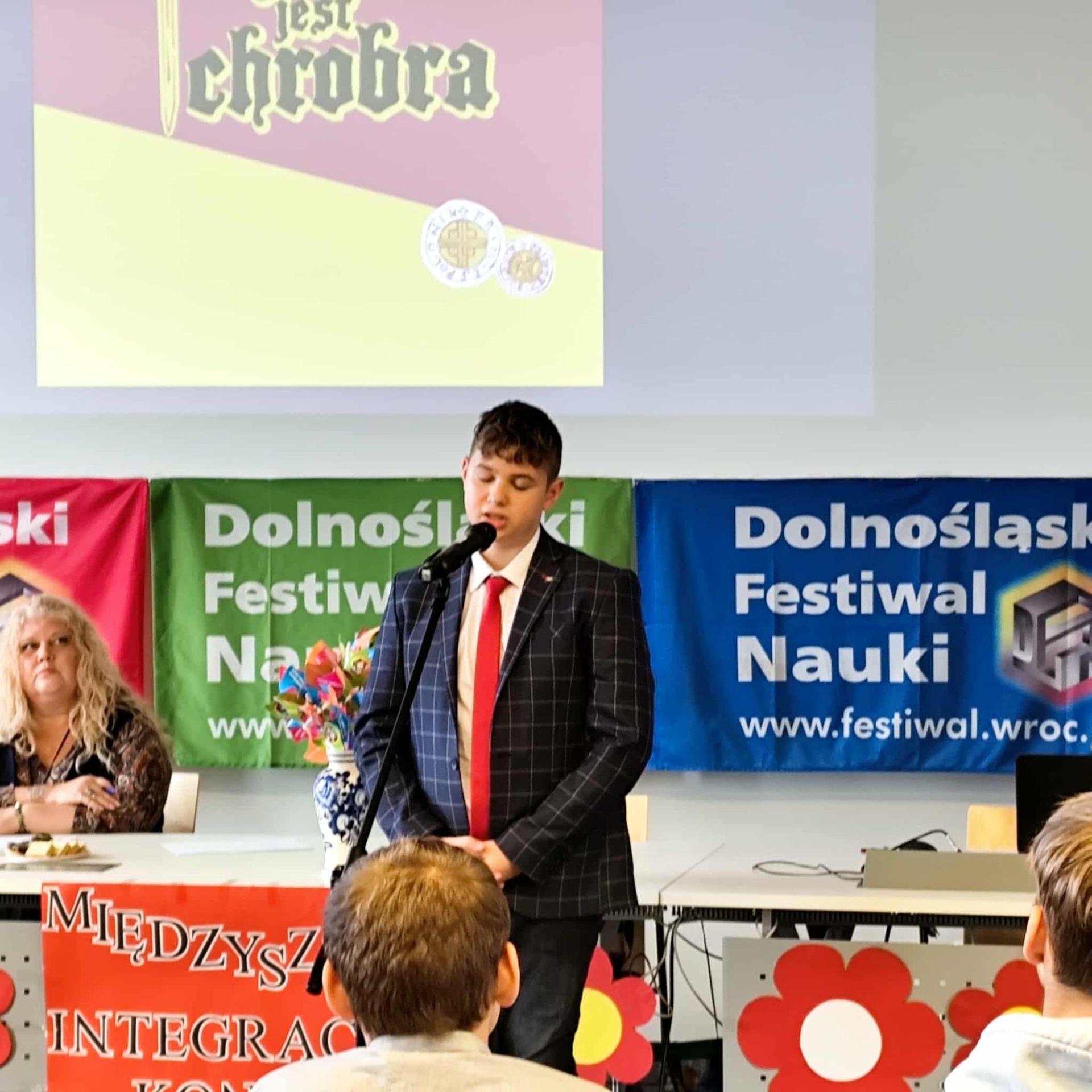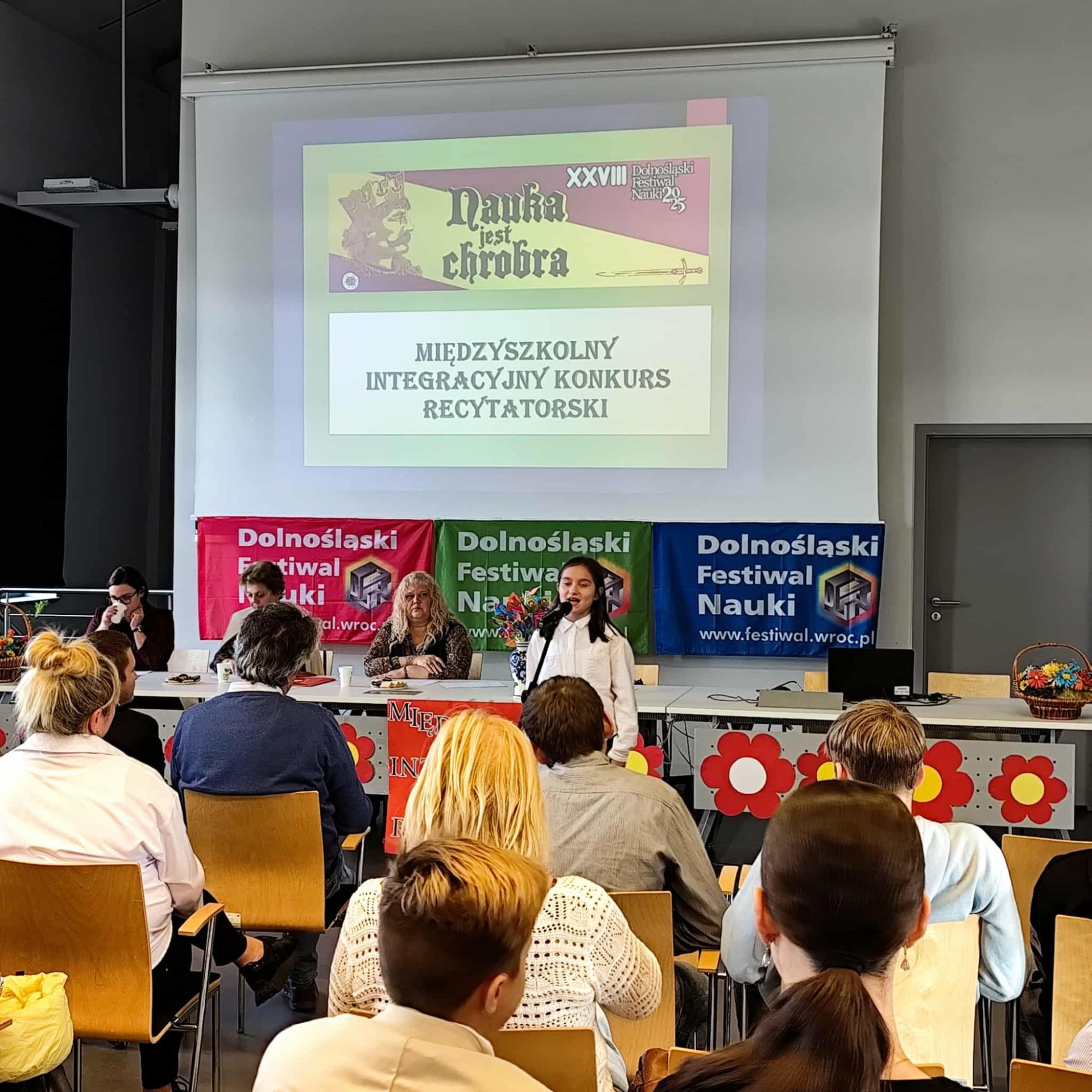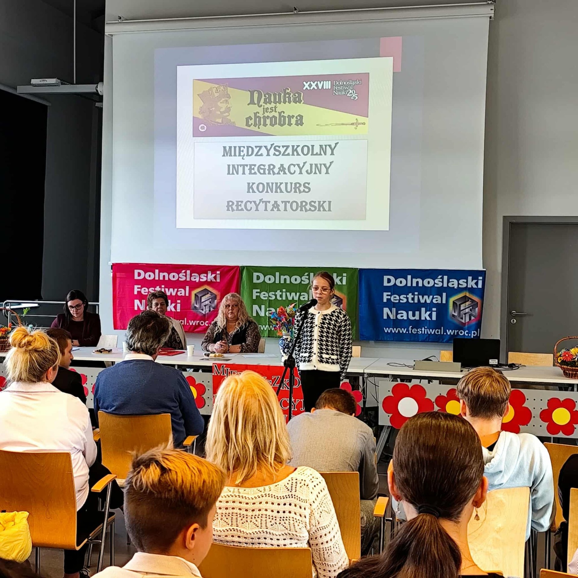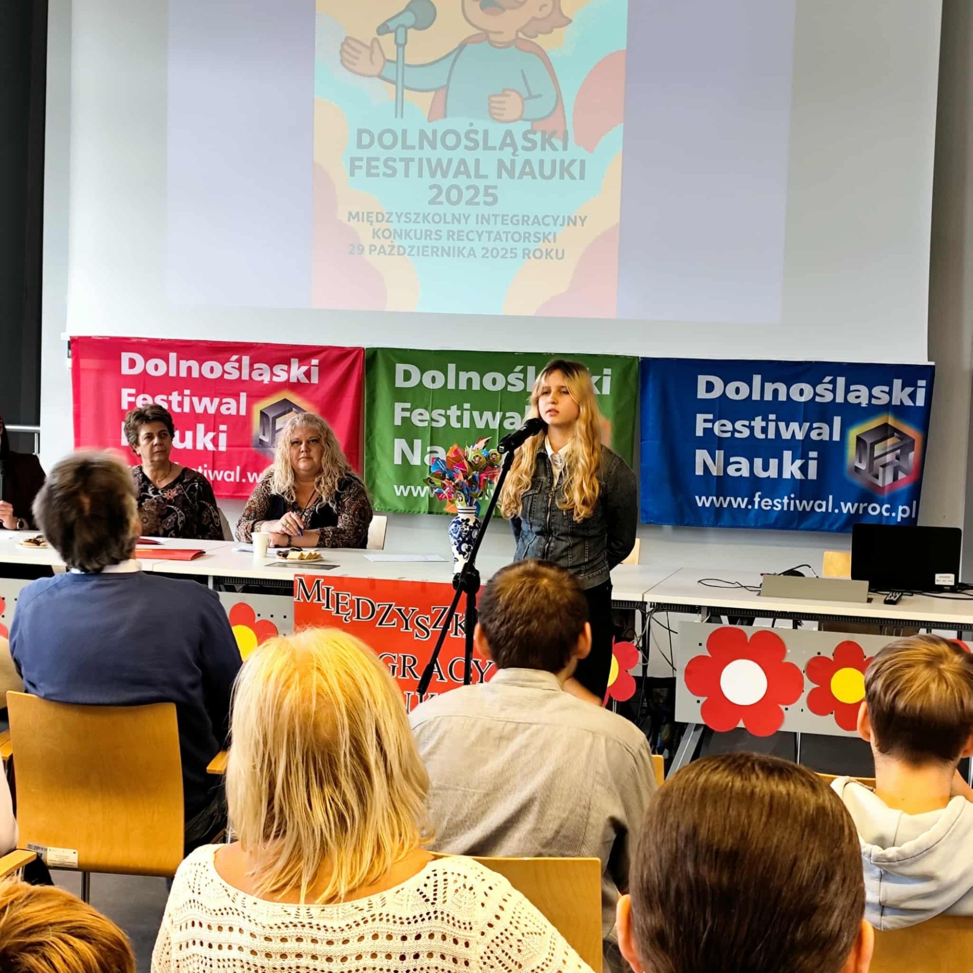 29 października 2025 roku uczniowie naszej szkoły wzięli udział w XXIII Międzyszkolnym Integracyjnym Konkursie Recytatorskim, organizowanym w ramach XXVIII Dolnośląskiego Festiwalu Nauki. Konkurs odbył się w Starej Kopalni w Wałbrzychu. Naszą szkołę reprezentowały Martyna Włodarska i Anna Król z klasy 5a oraz Wiktor Sosiński z klasy 7c. Z dumą informujemy, że Wiktor Sosiński zdobył I miejsce w kategorii uczniów z klas 7-8. Gratulujemy wszystkim uczestnikom!