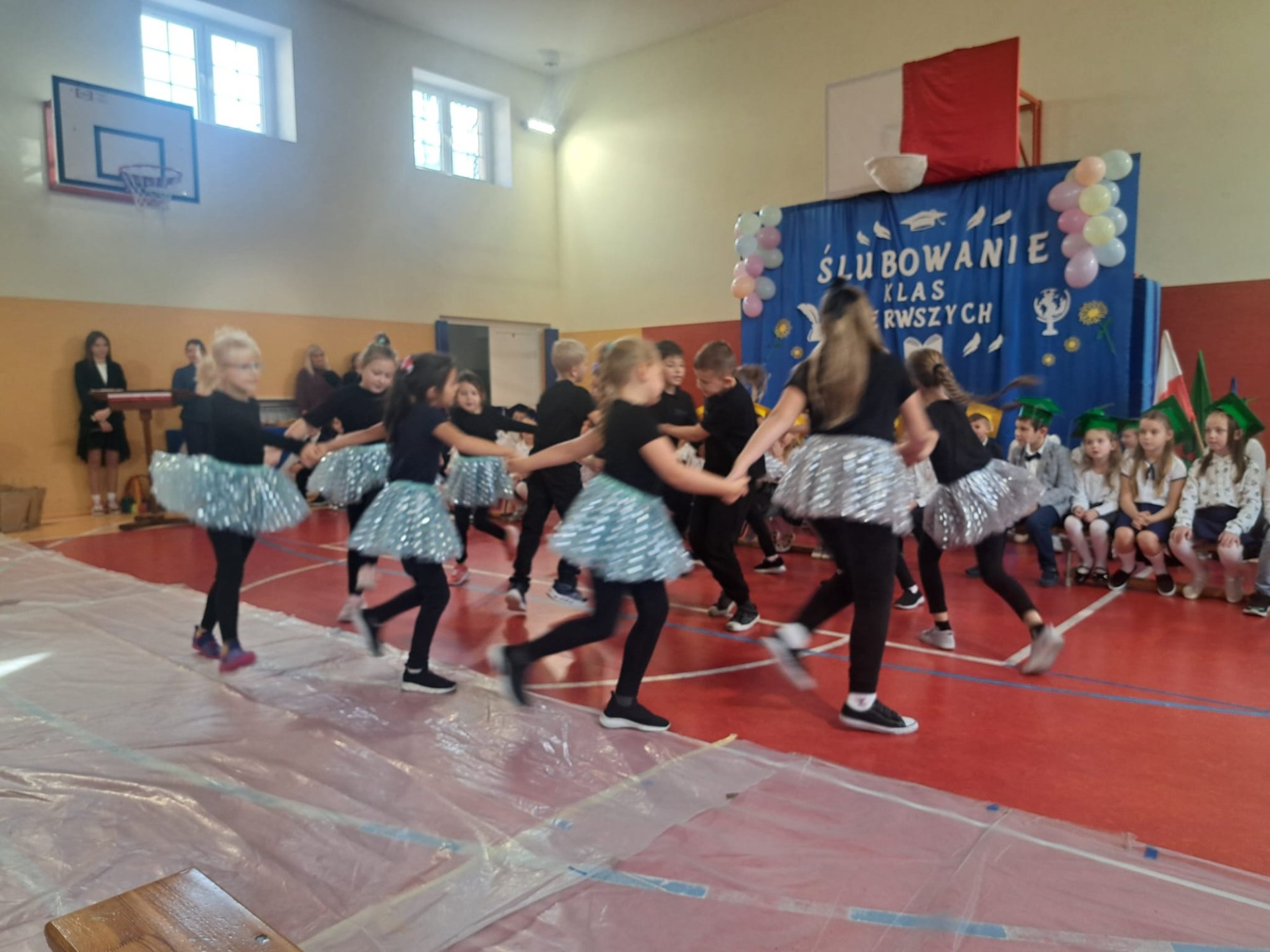 Przed złożeniem ślubowania, w którym pierwszoklasiści zobowiązali się do pilnej nauki, szacunku dla nauczycieli i kolegów oraz dbania o dobre imię szkoły, uczniowie zaprezentowali swoje umiejętności w programie artystycznym.