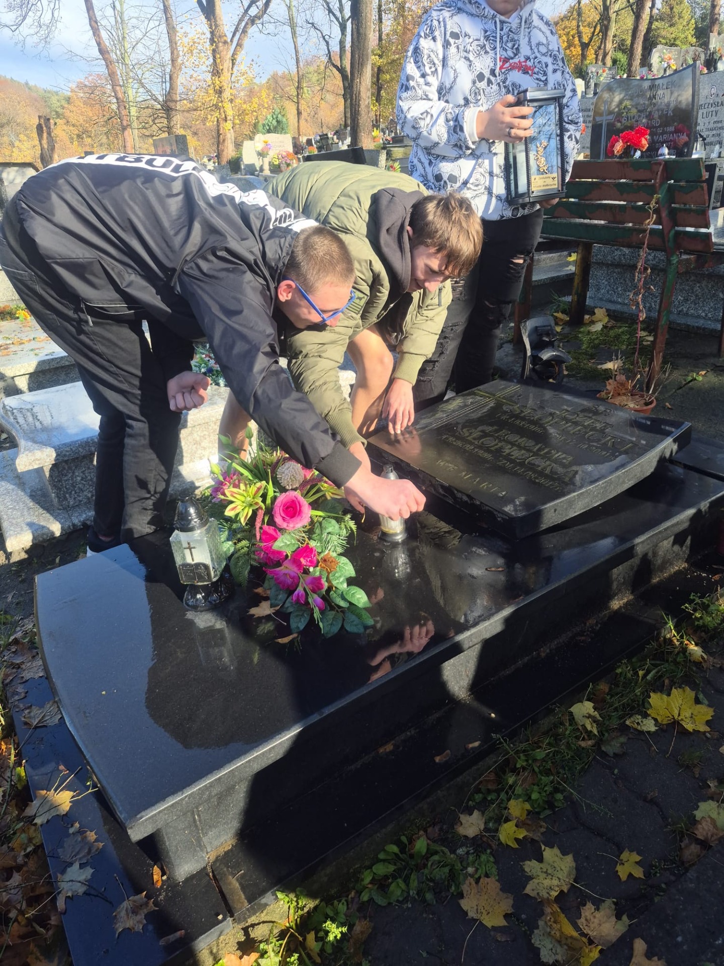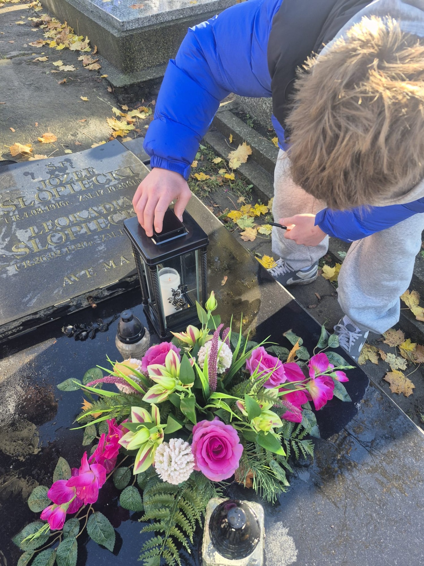 W tym roku przedstawiciele klasy 8b i 8a odwiedzili groby śp. Leokadii Słopieckiej oraz Mieczysława Młynarskiego, 💐 zadbali o porządek w miejscu pamięci i wspólnie zapalili znicz — symbol wdzięczności. ❤️