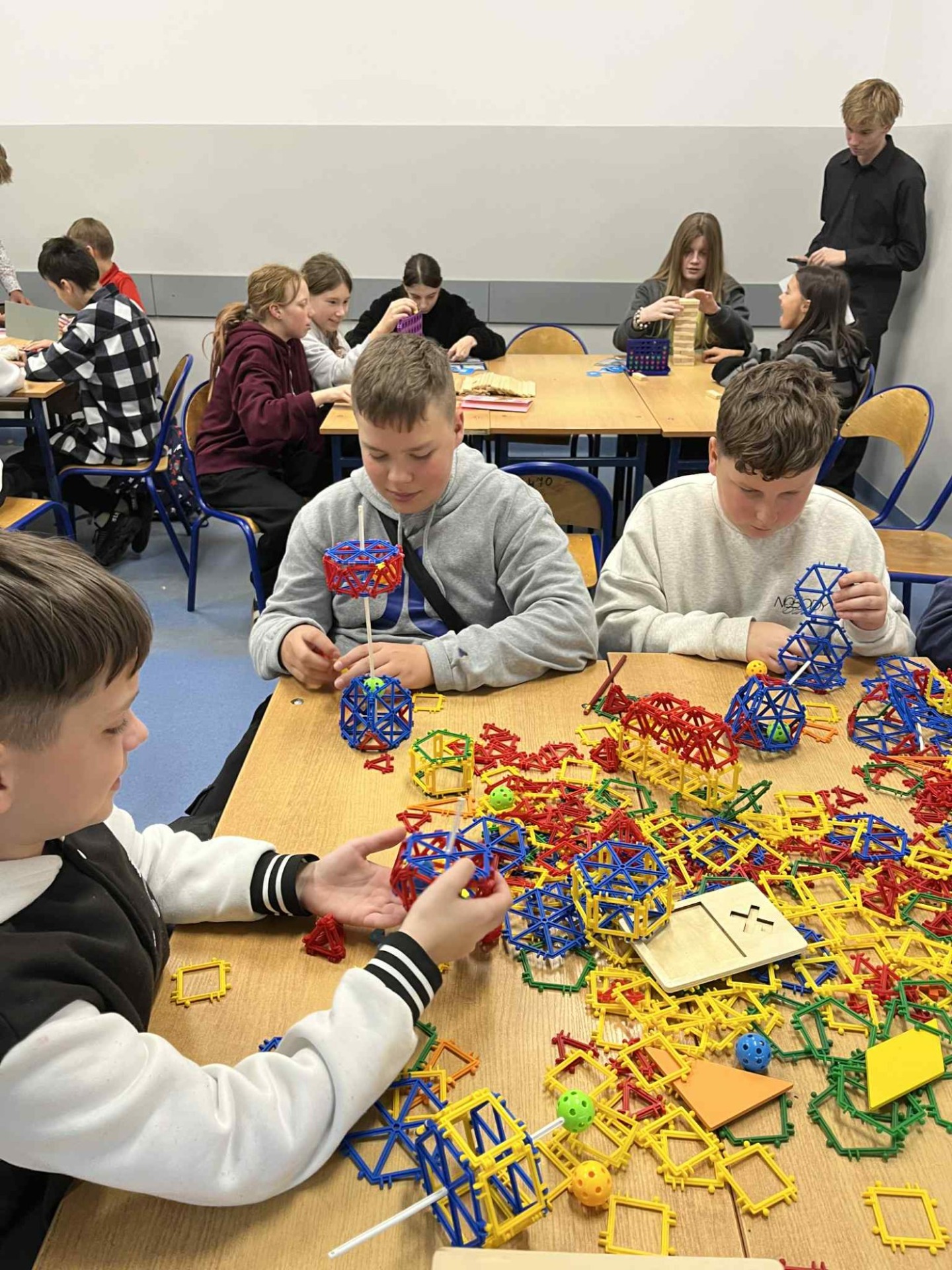 ➗ Podczas matematycznych zmagań nie zabrakło dobrej zabawy – uczniowie rozwiązywali łamigłówki, grali w gry logiczne i odkrywali, że matematyka to nie tylko liczby i działania, ale też świetny sposób na rozwijanie sprytu i współpracy.