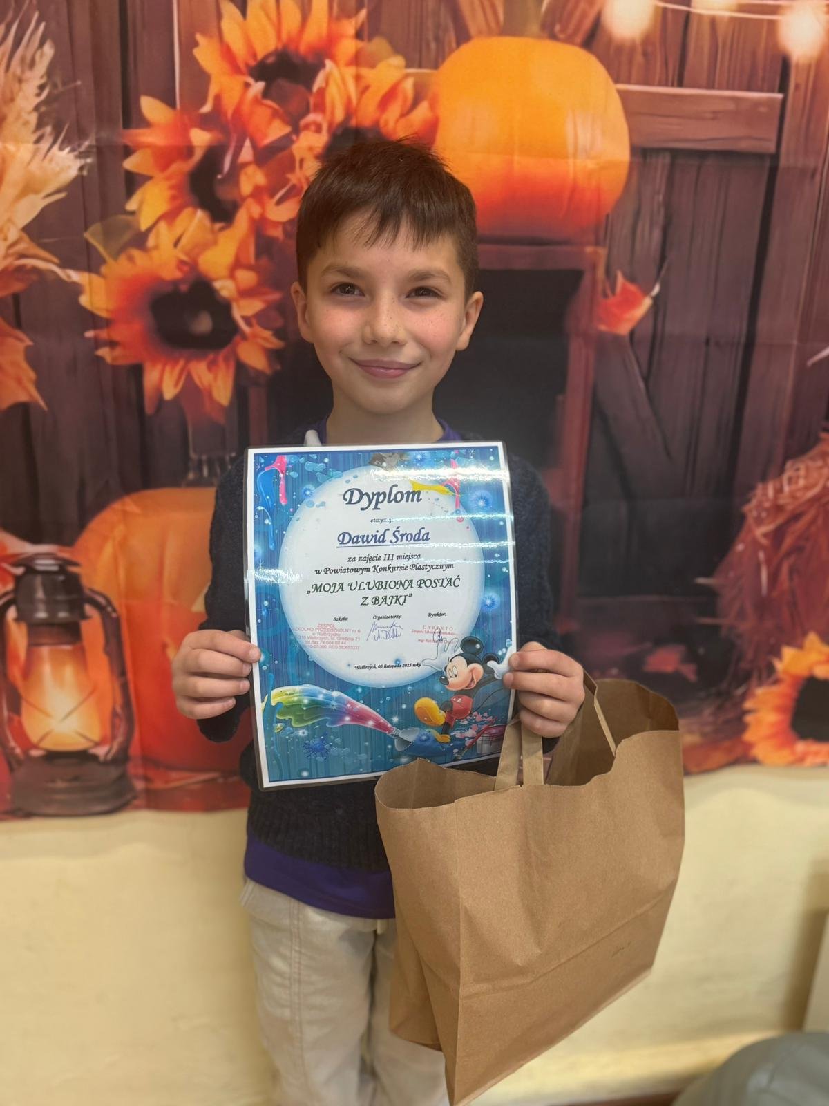 Powiatowy konkurs plastyczny " Moja ulubiona postać z bajki"- to była doskonała okazja, aby odkryć wartości, jakie kryją się za postaciami ze znanych opowieści. Bohaterowie bajek uczą nas m.in. dobroci, odwagi, mądrości i stają się naszymi ulubieńcami. Wiedzą o tym utalentowani laureaci konkursu z naszej szkoły, którzy wykonali prace przedstawiające swoich bajkowych ulubieńców.