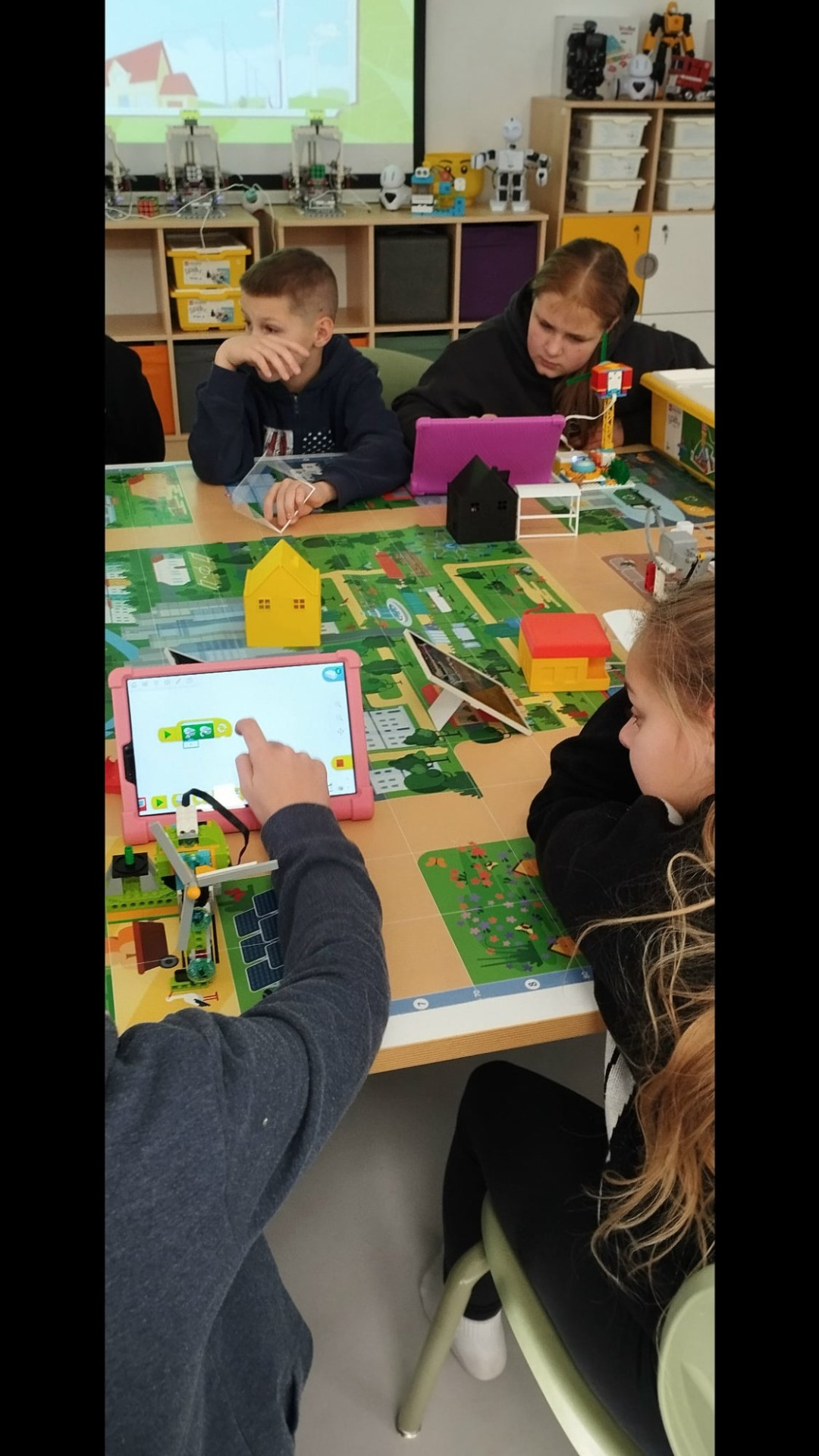 Wspólnie projektowali i ustawali modele na macie🚗🚕🚐🚒🚦🚥🏠🛖🏡.