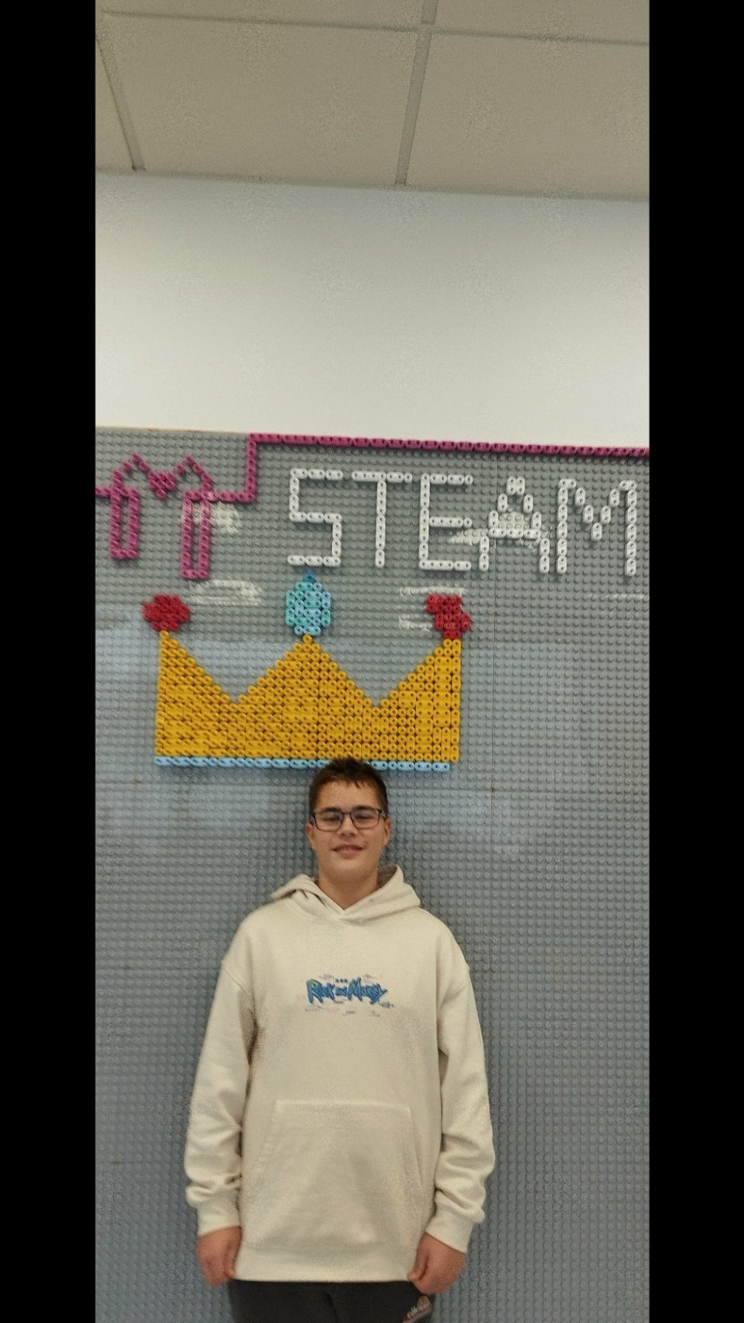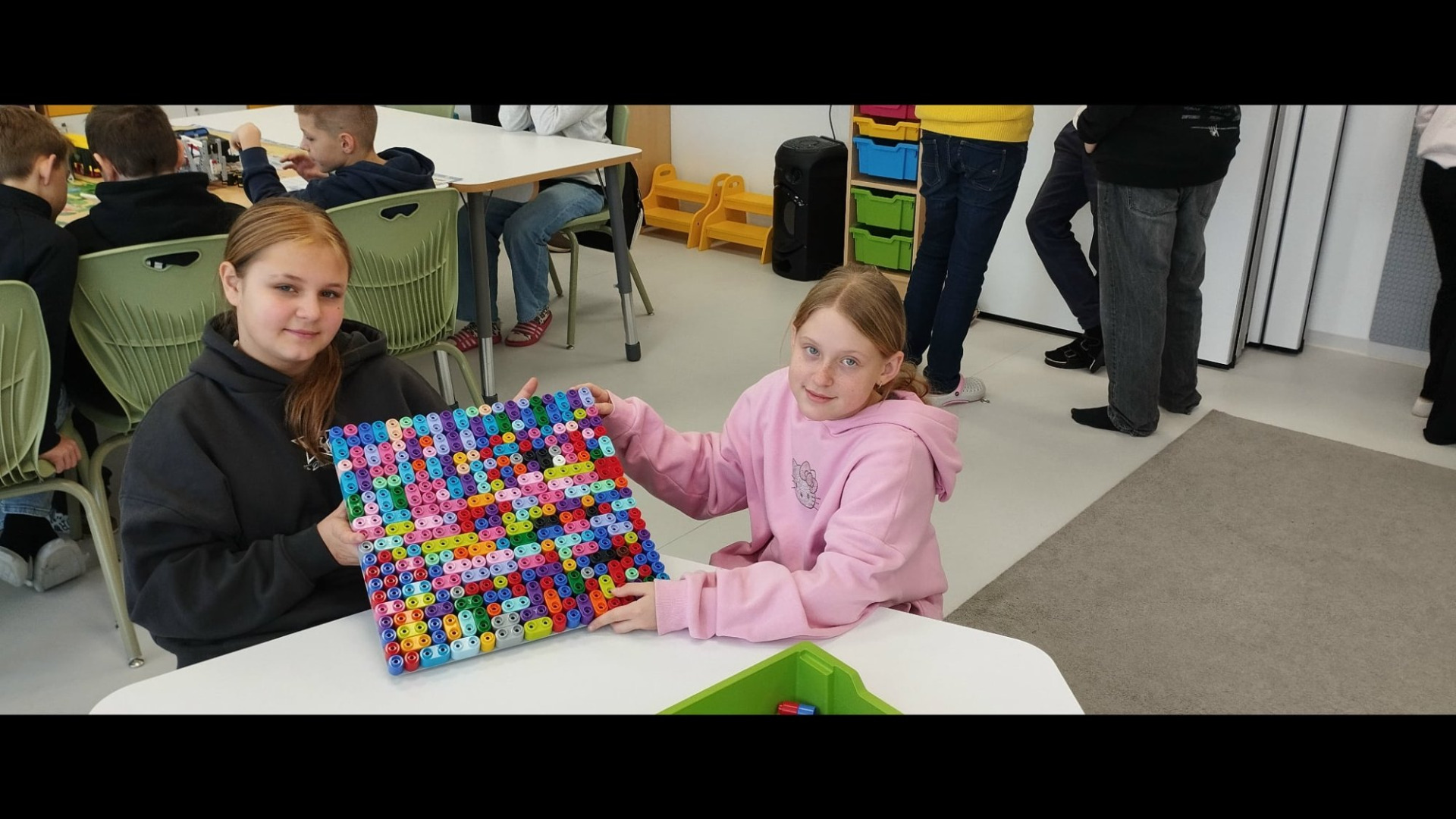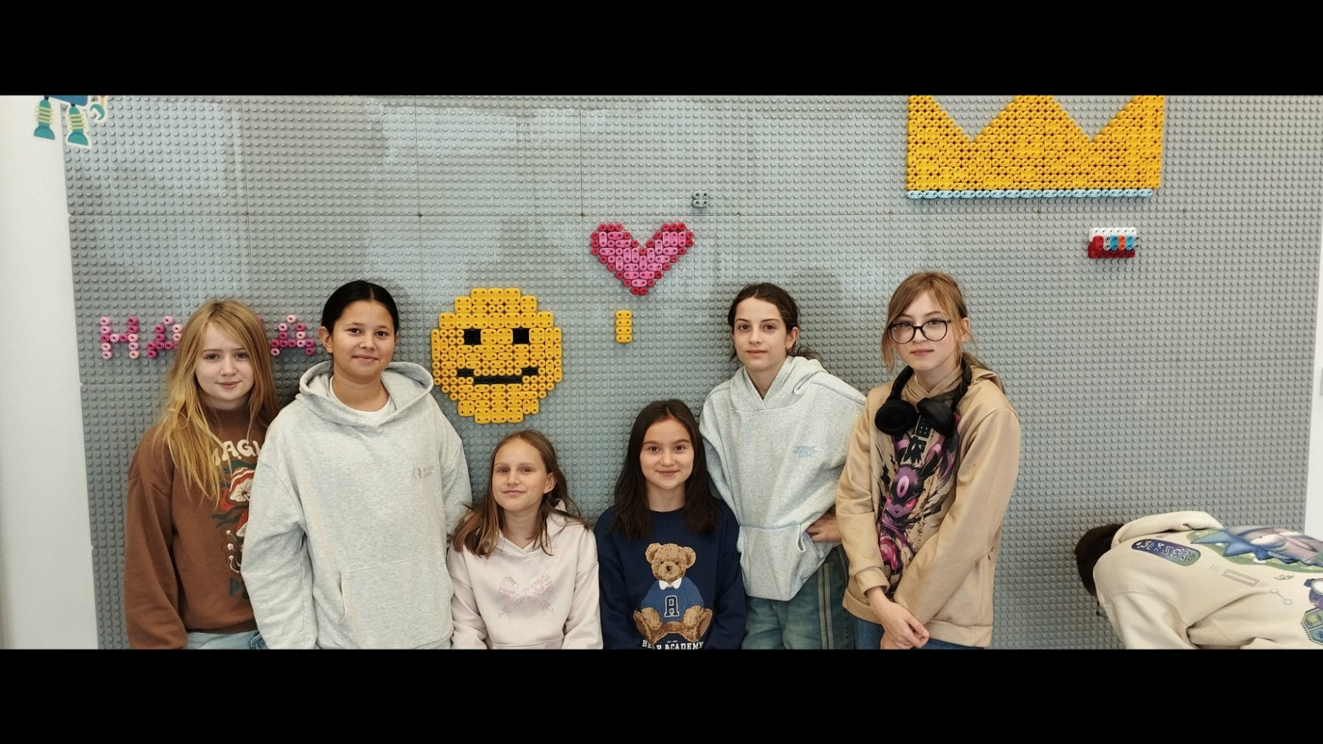 Na rozgrzewkę uczniowie obu państw tworzyli dowolne wzory na macie z klocków 🎛️🎛️.