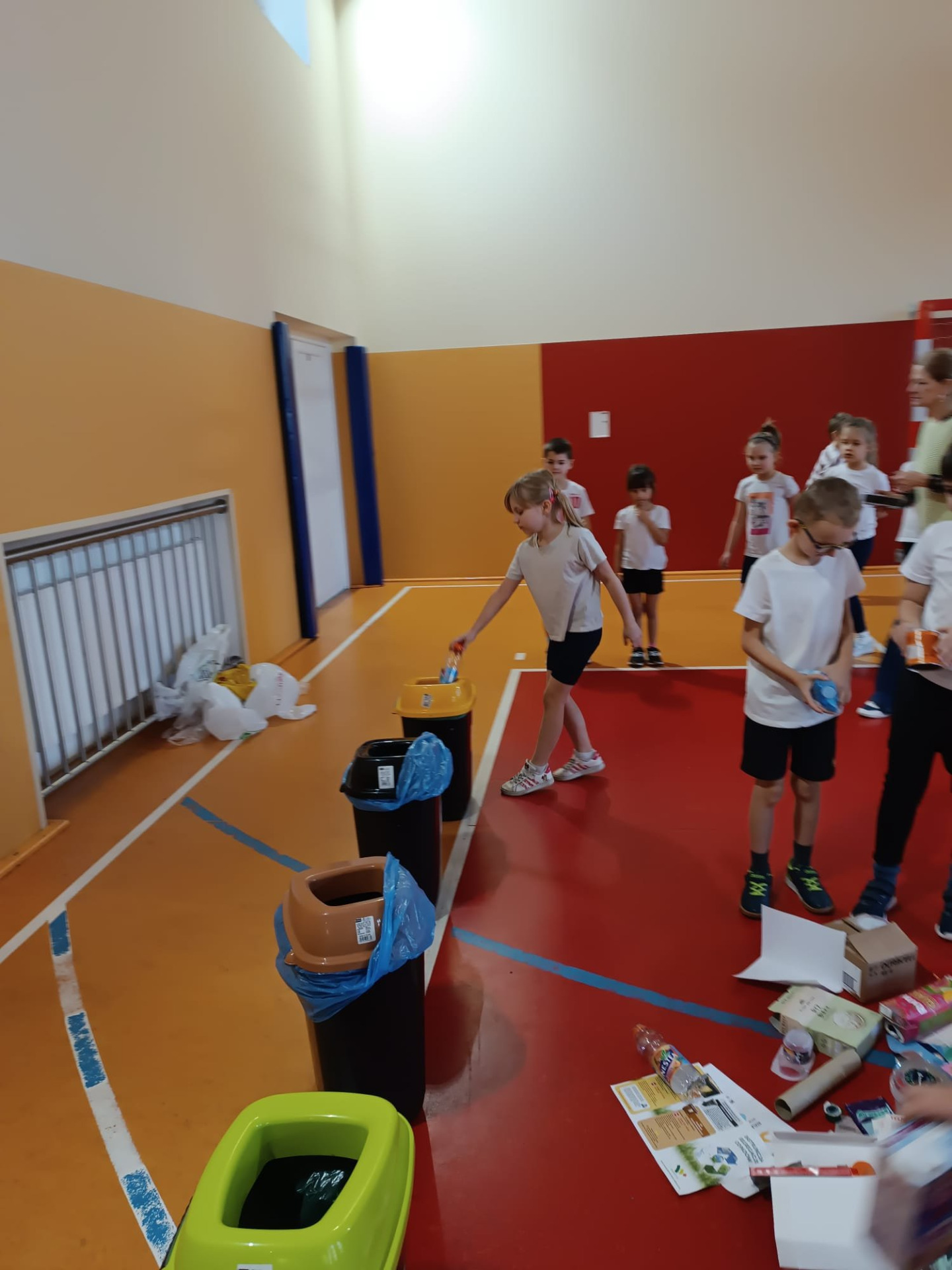 Głównym punktem programu były ekologiczne rozgrywki sportowe. Uczniowie z wielkim zaangażowaniem łączyli zadania ruchowe z praktyczną nauką segregacji – w trakcie sportowych sztafet dzieci przyporządkowywały różne śmieci do odpowiednich pojemników.